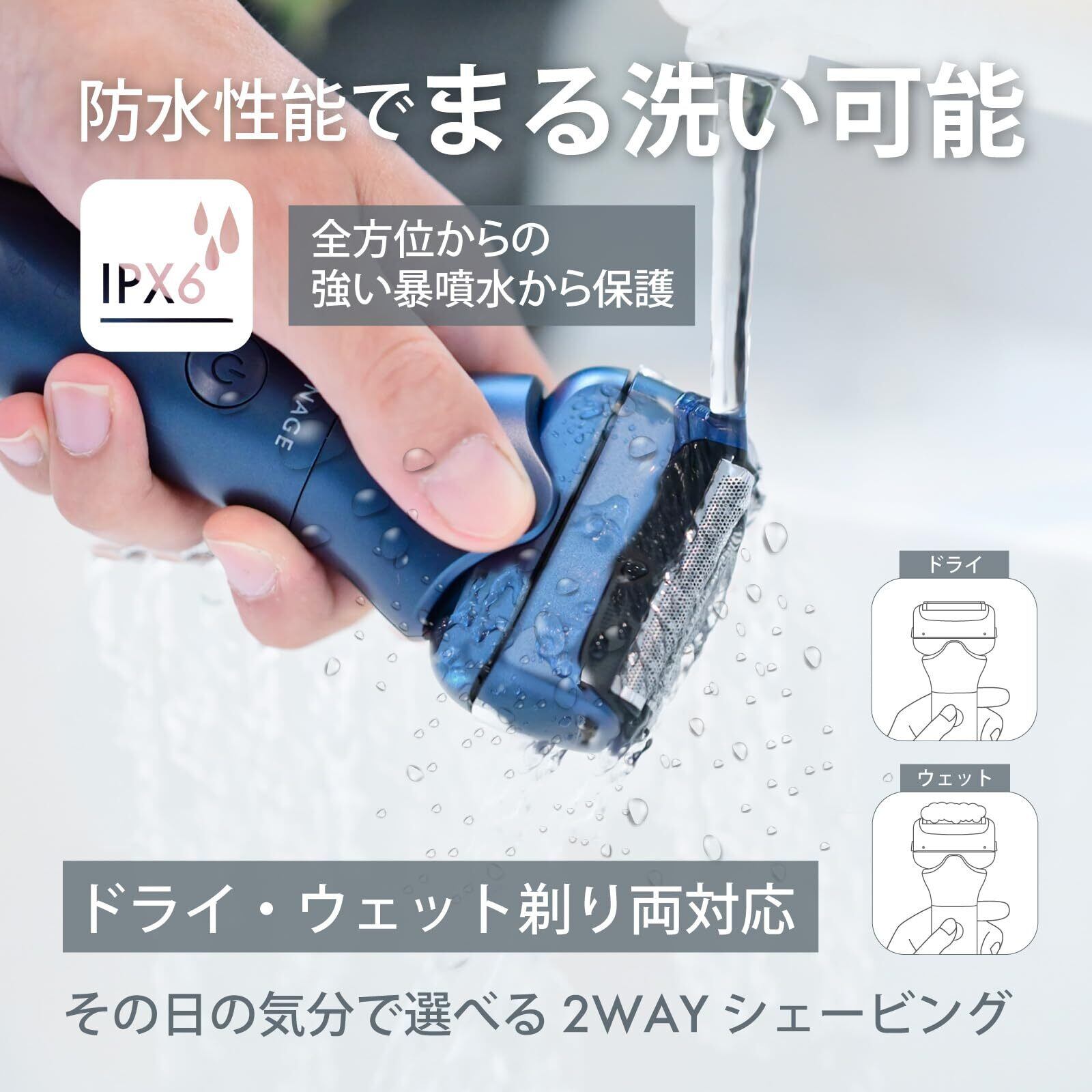 【ドライ・ウェット剃り両対応、IPX6防水設計】防水設計なのでドライ剃りはもちろん、シェービングフォームやジェルの使用もOK。コンセントを抜けばお風呂での使用も可能。朝の洗顔ついでや入浴時にもサッと使える!防水性能はIPX6なので丸洗い可能、ヘッドも簡単に取り外せるので刃の内部にたまった毛くずもお手入れ!本体を清潔に保つことで長く使用することができます。(洗浄時は完全に水中に沈めないでください。)