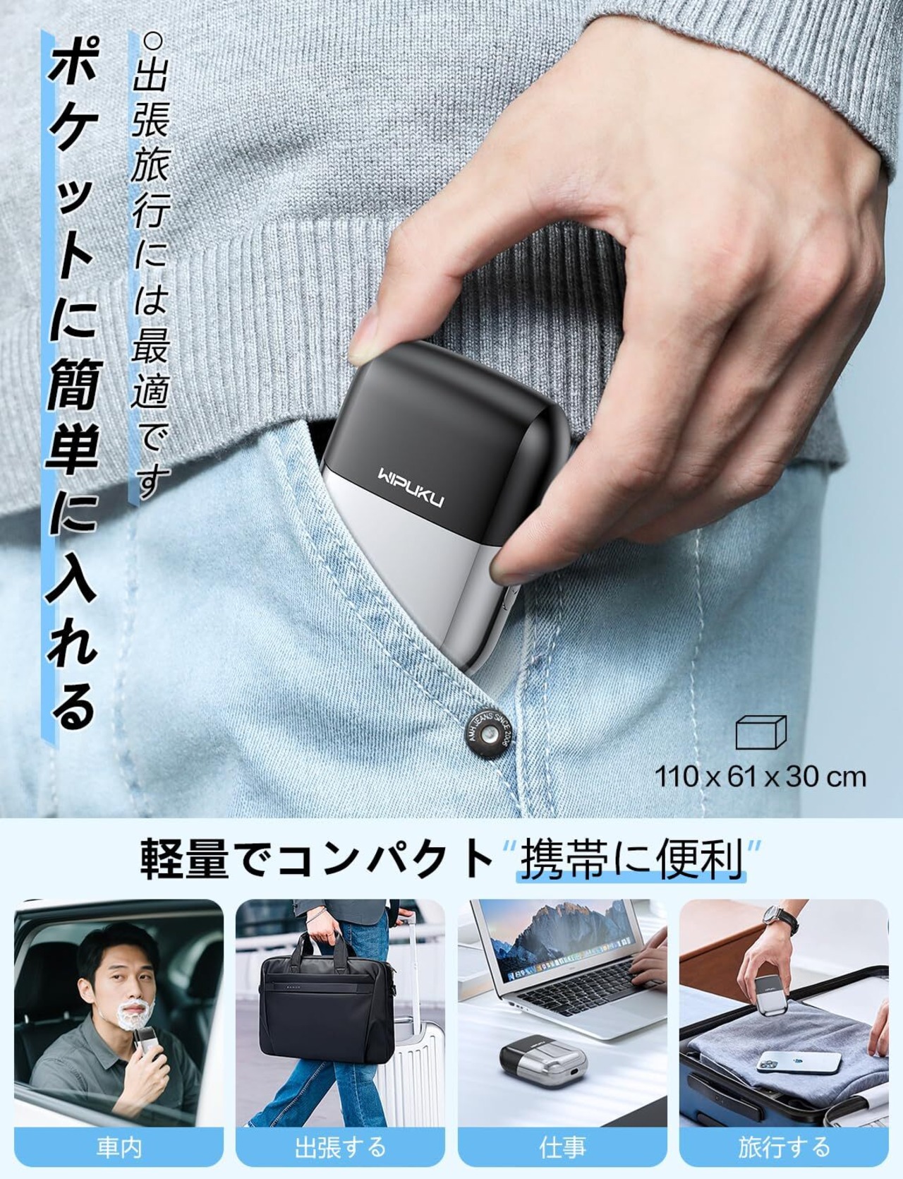 Wipuku シェーバー 小型 メンズ 往復式3枚刃 電気シェーバー 深ぞり 乾湿両用 髭剃り IPX7防水 電動 シェーバー 90日間連続使用 ロック機能 髭剃り LED残量表示 Type-C急速充電 軽量 出張・旅行用 プレゼント最適 収納ケース付き BS-9012