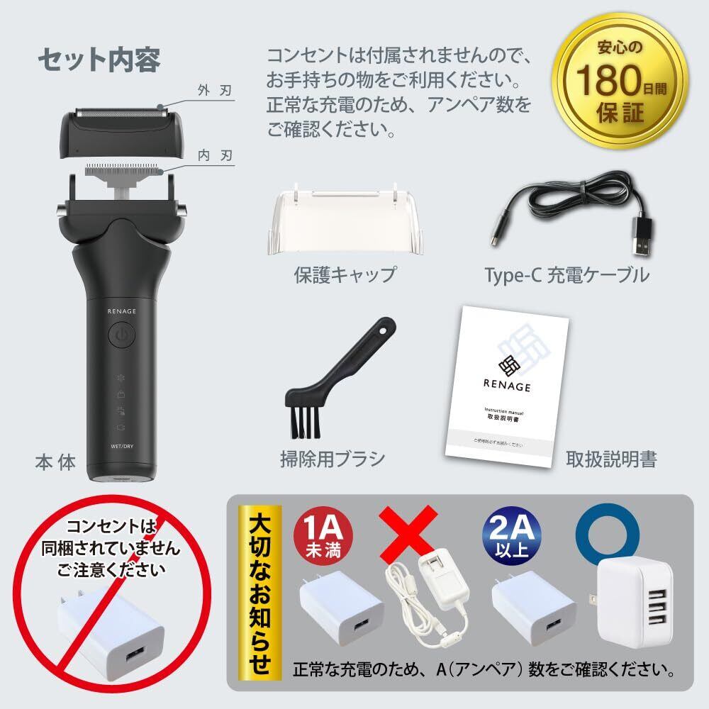 ひげそり 電動シェーバー メンズ 3枚刃 髭剃り 往復式 シェーバー IPX6防水 RENAGE Type-Cタイプ 急速充電 お知らせランプ 丸洗い可 ロック機能付き 密着ヘッド トリマー付き 自立キャップ付き パワー調整機能 深剃り ドライ剃り ウェット剃り(ネイビー)