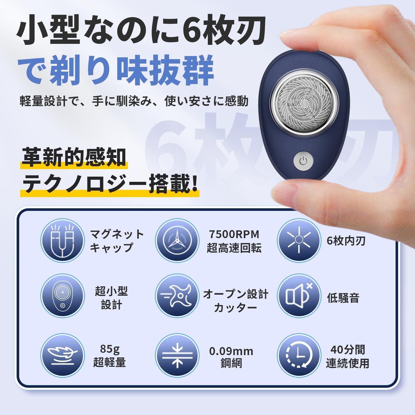 シェーバー メンズ 小型 電気シェーバー 6枚刃 回転式 電動シェーバー 乾湿両用 ひげ剃り Type-C充電式 マグネットキャップ カミソリ 低騒音 深剃り 電動髭剃り 水洗い 肌にやさしい 軽量 携帯便利 出張・旅行用 父の日 プレゼント (マットネイビー)