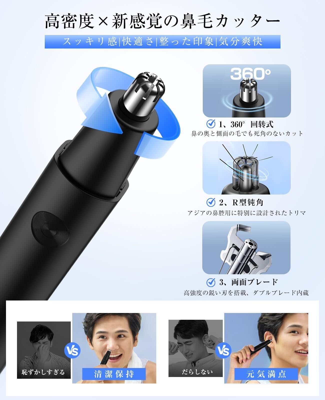 ⏯️【10000RPM超高速モーター&静音設計】全銅製のDCモーターを搭載、業界トップレベルの高トルクブラシレスモーターを採用するまゆげカッター。カーボンブラシによる摩擦音を大幅に抑え、低損失を実現しながら耐久年数も向上。锐利な極薄鋼刃と良質な構造を採用し、苦痛と不快な引っ張りがない、長い/短い/太い/硬い眉毛や鼻毛や耳毛も瞬時にカット、最小の領域でも高速できれいに剃ることができます。自宅でのセルフケアを一層楽に、朝の忙しい時間帯や夜の静かな時間でも気軽に使用できるのが大きな魅力です。