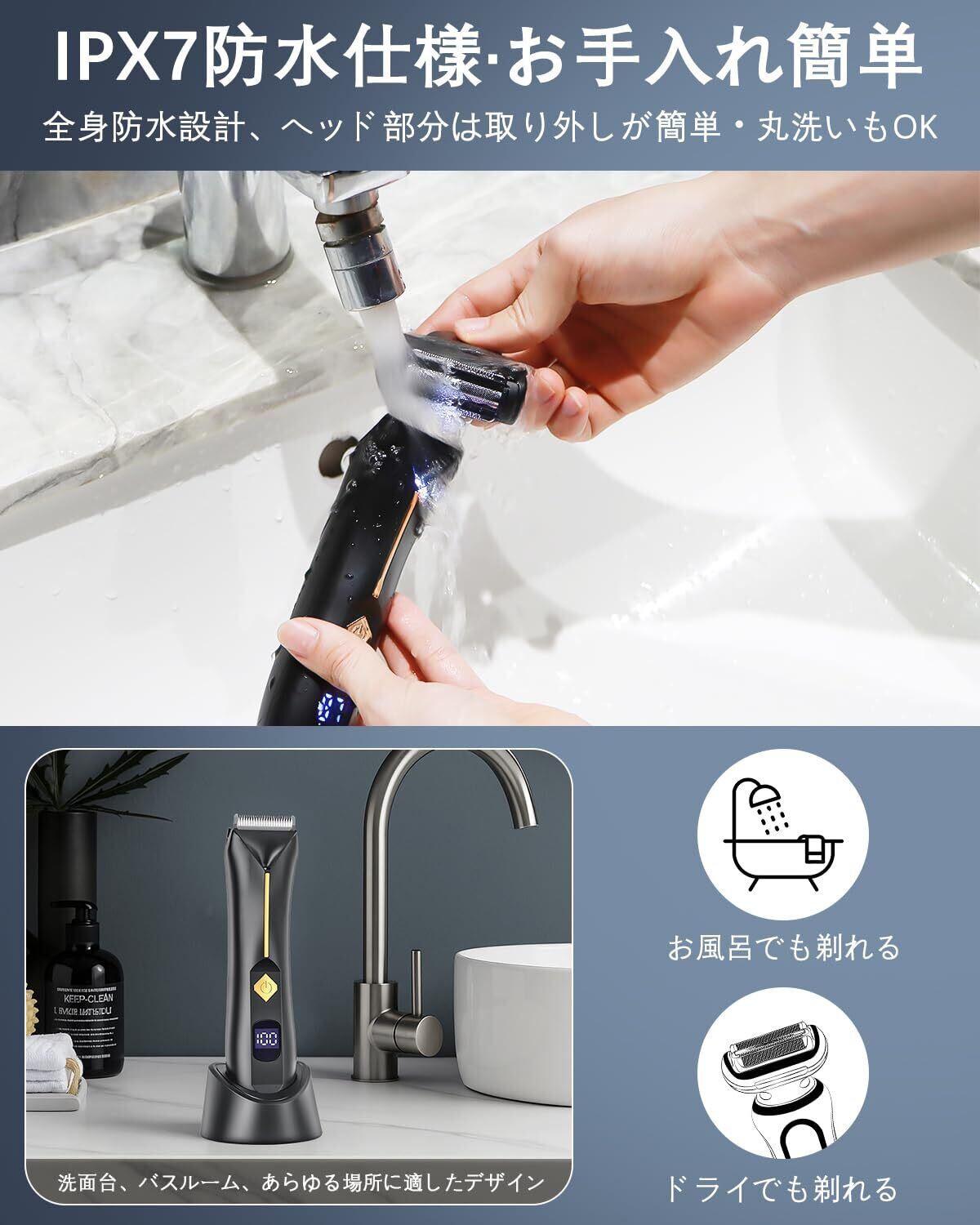 【新モデル】ボディシェーバー メンズ VIO メンズシェーバ 電気 男性用 LEDディスプレイ USB 充電式 全身 ボディ トリマー 自動研磨 IPX7防水 ロック機能 お風呂剃り可 長さ調整 電動バリカン 水洗い可 LEDライト付き 安全ロック機能 使用可3mm~12mmの4種類の付属コーム付き 除毛 胸 腹 腋毛 すね毛 収納ケース プレゼント 父の日 (ブラック)