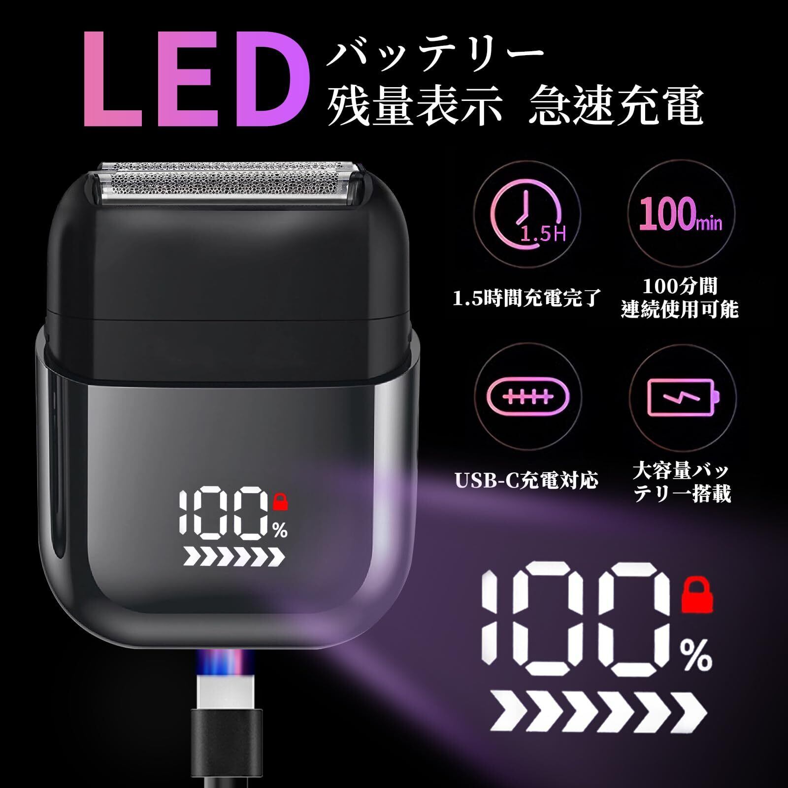 シェーバー メンズ 電気シェーバー 乾湿両用 電動 小型 深剃り 低騒音 往復式 シェーバー 携帯用 IPX7防水 髭剃り 3枚刃 LED残量表示 ひげ剃り 電動 Type-C充電 ロック機能 男性用 軽量 持ち運び便利 出張/旅行/車内常備 長持ちバッテリー 超軽量
