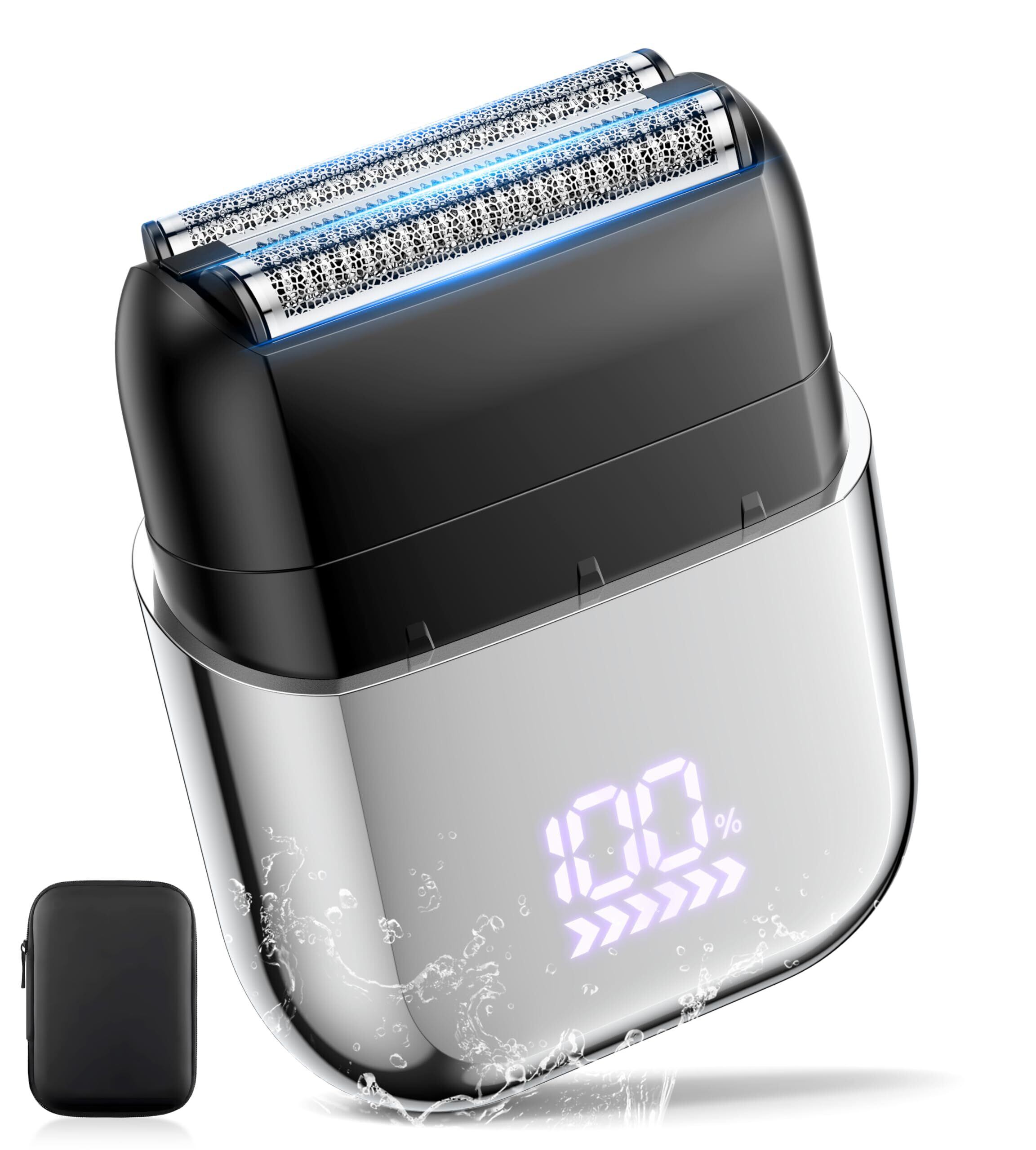 Wipuku シェーバー 小型 メンズ 往復式3枚刃 電気シェーバー 深ぞり 乾湿両用 髭剃り IPX7防水 電動 シェーバー 90日間連続使用 ロック機能 髭剃り LED残量表示 Type-C急速充電 軽量 出張・旅行用 プレゼント最適 収納ケース付き