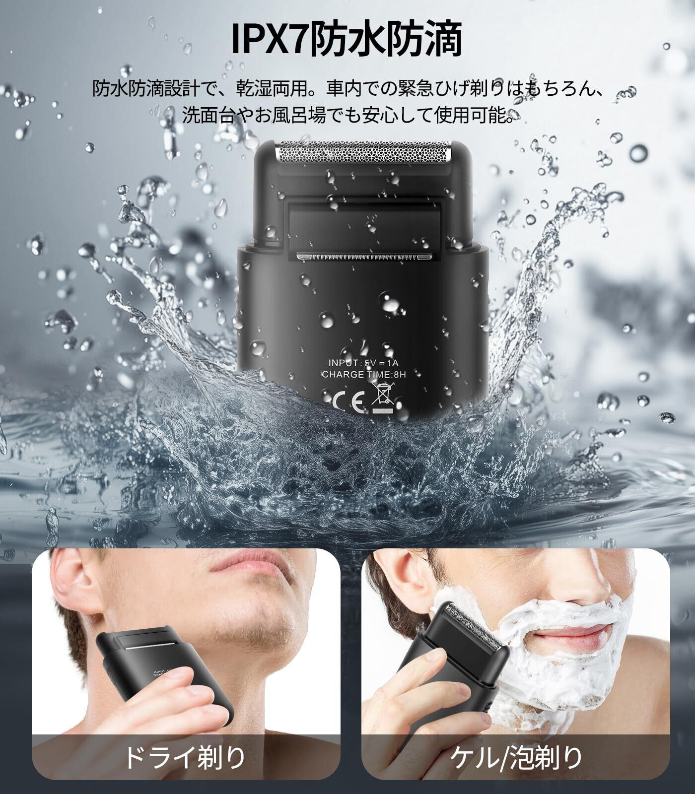 【IPX6防水仕様・ドライ&ウェット対応】電気シェーバーはIPX7の防水規格に対応しており、防水・防滴機能を備えています。乾湿両用で、乾いた肌に直接シェービングすることはもちろん、朝のシャワータイムに、蒸気とシェービングフォームの香りと共にを使用してシェービングすることもできます。様々なユーザーのニーズに対応する携帯髭剃りです。