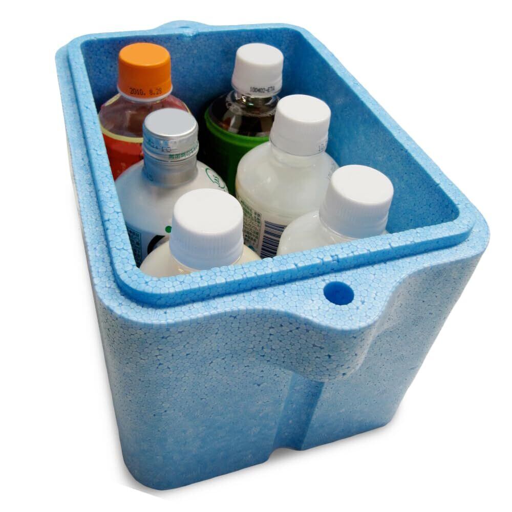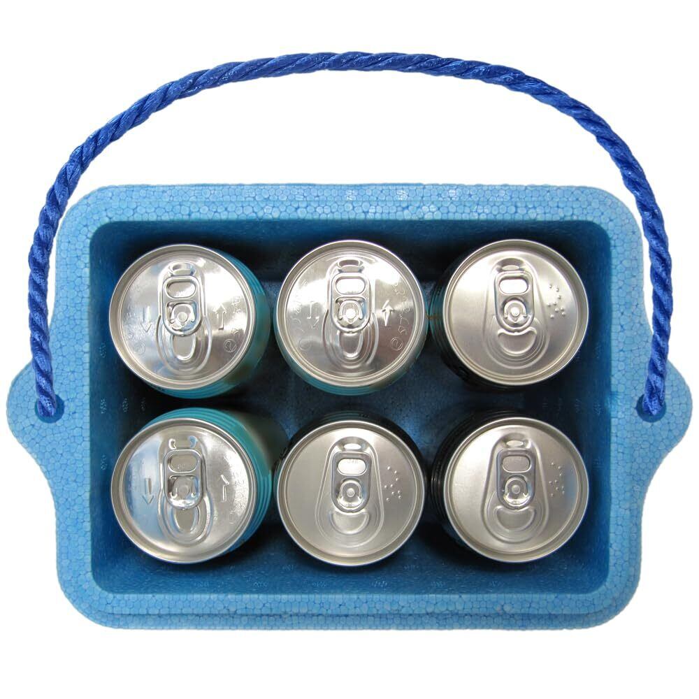 持ち運びに便利な手持用ヒモが付いた発泡クーラー。飲料の保冷保温に。