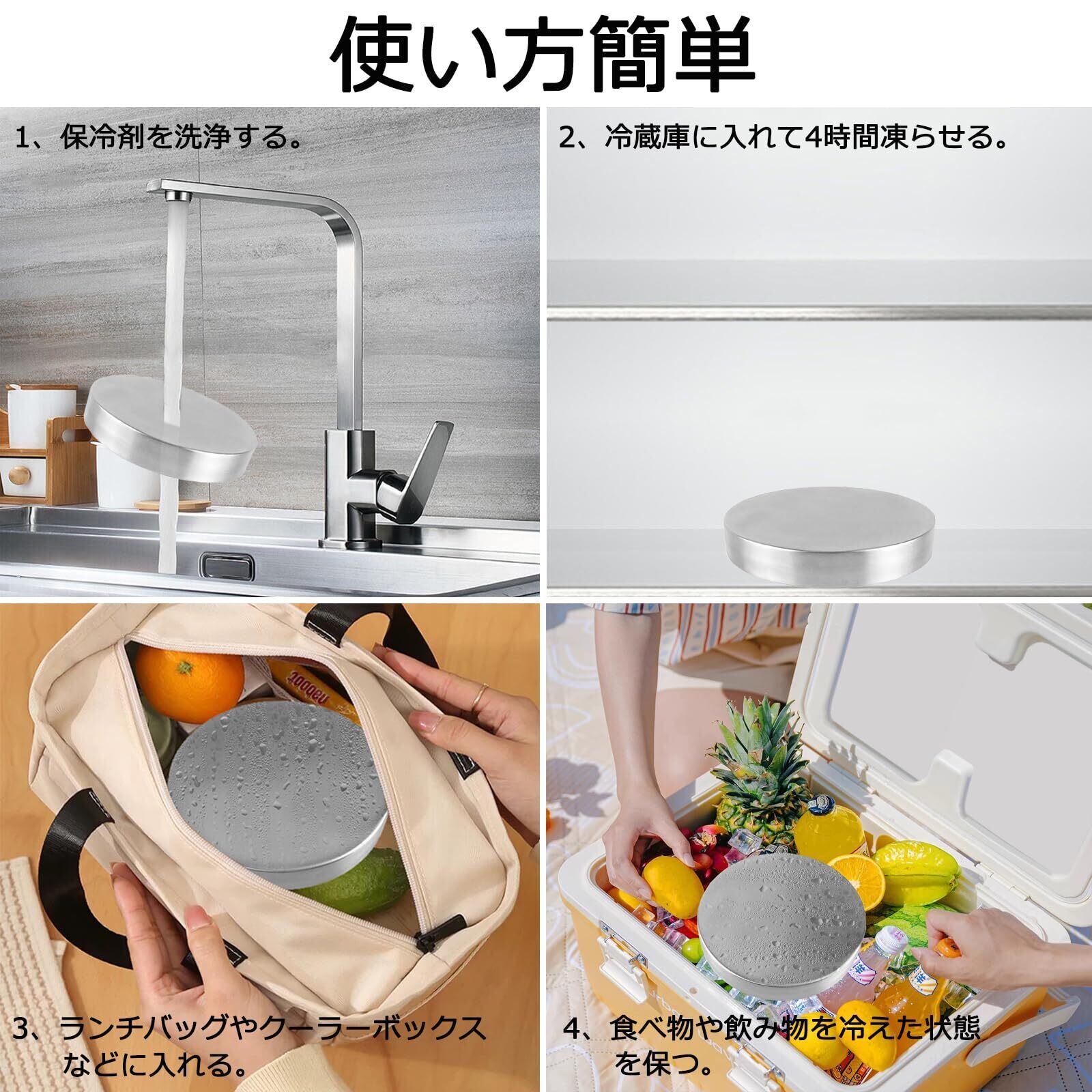 【使い方簡単】ご使用前に冷蔵庫または冷凍庫で約4時間冷やすだけです。手洗いまたは食器洗い機で洗えるので、お手入れが簡単です。冷却時に食品に直接触れないので、衛生的で安心してお使いいただけます。