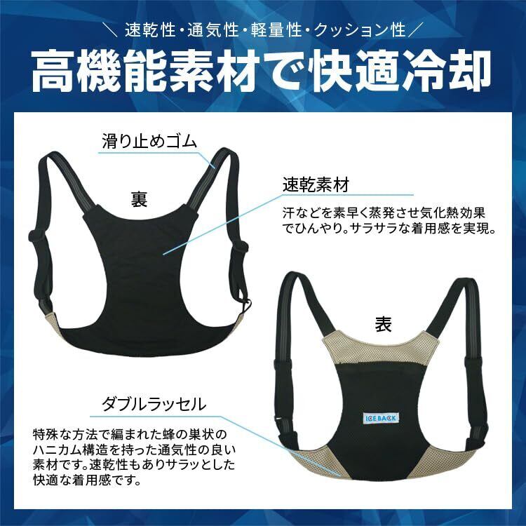 熱中症対策グッズ【BR-530 ICE BACK アイスバック2 カラー:ブルー】専用保冷剤と気化熱効果で背中を冷やす!速乾素材使用