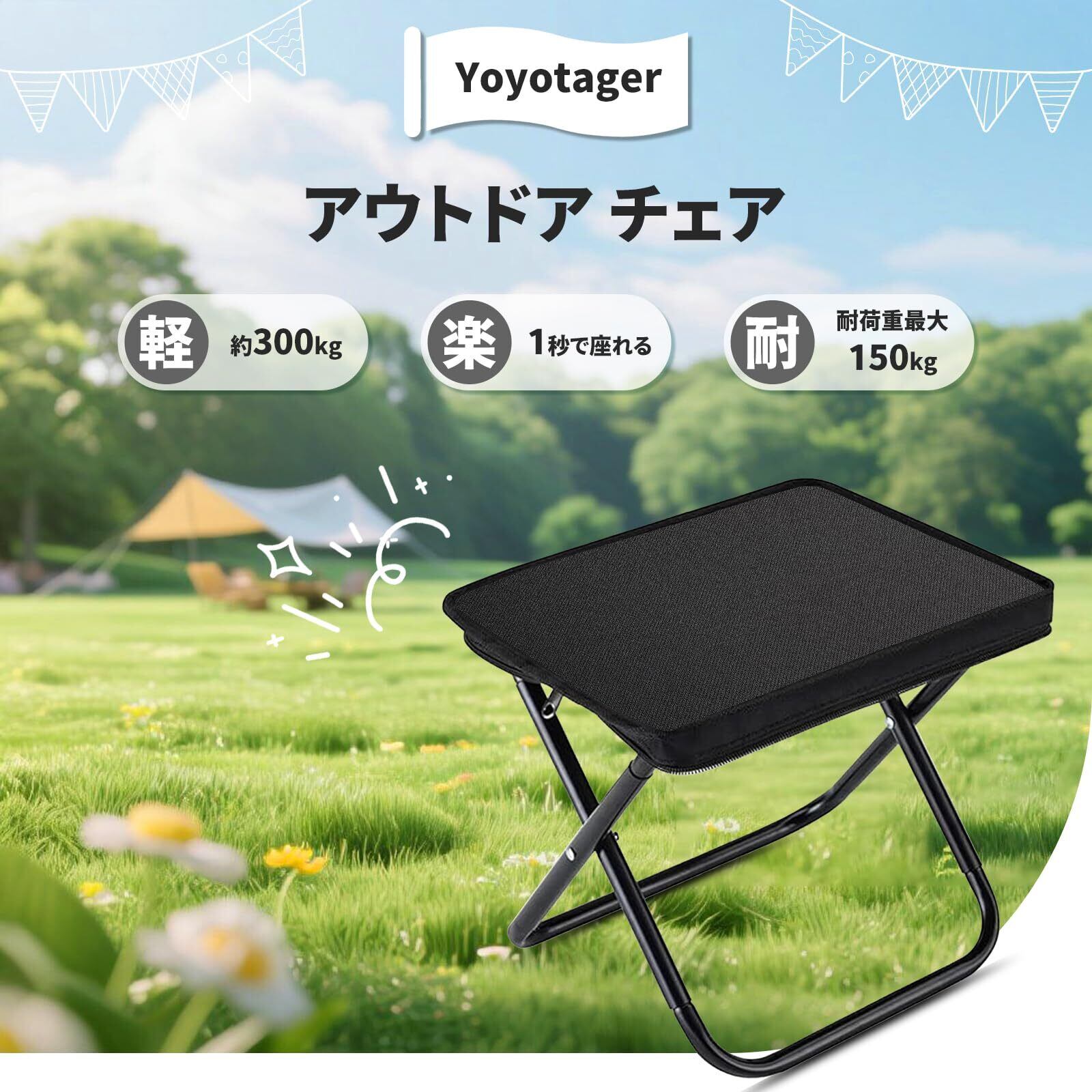 【軽量で1秒で座れる】Yoyotager アウトドア チェア 折りたたみ椅子 ポータブル 伸縮一体式 折り畳み コンパクトイス 超軽量 310g 携帯 耐荷重150kg チェアリング キャンプ バーベキュー ソロキャンプ お釣り ピクニック 試合観戦 (ブラック)