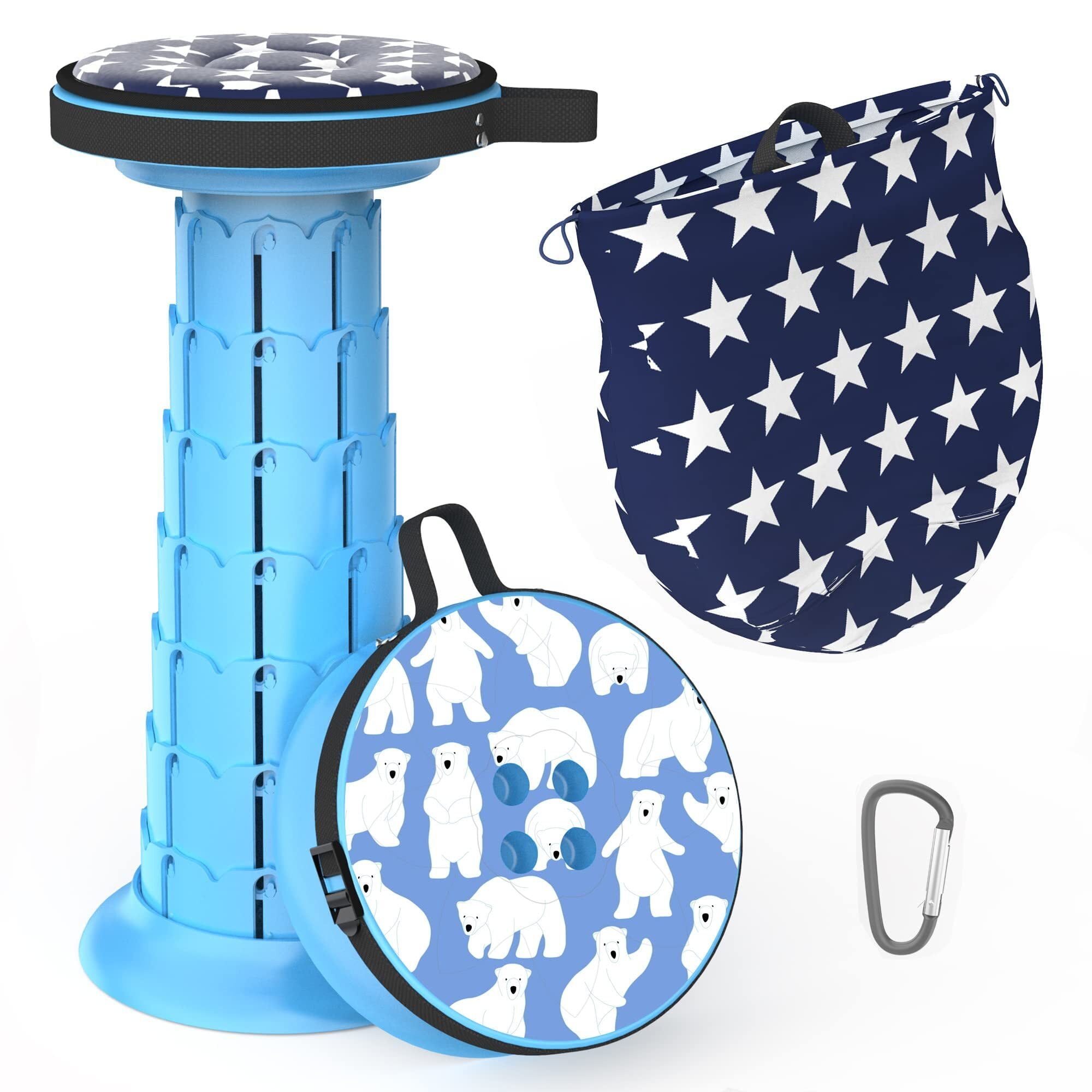 ALEVMOOM 椅子 折りたたみ椅子 おりたたみいす 伸縮スツール 折りたたみいす 折り畳み 高さは45cmまで調整可能 伸縮式 耐荷重200kg 軽量 コンパクト 持ち運び便利 クッション カラビナ つき アウトドア キャンプ ハイキング 釣り BBQ 屋内 踏み台 運動会 体育館 (クッション、収納バッグ、カラビナ)(クマ)