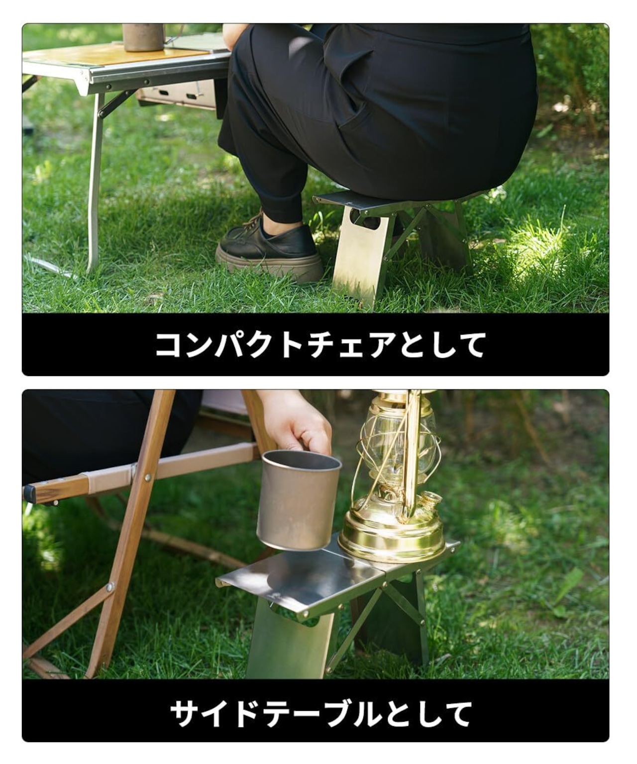 【多用途】アウトドア キャンプ用のスツールだけではなく、ミニサイドテーブルやミニ脚立としても使えます。キャンプや釣りなど様々なシーンで活躍できます。
