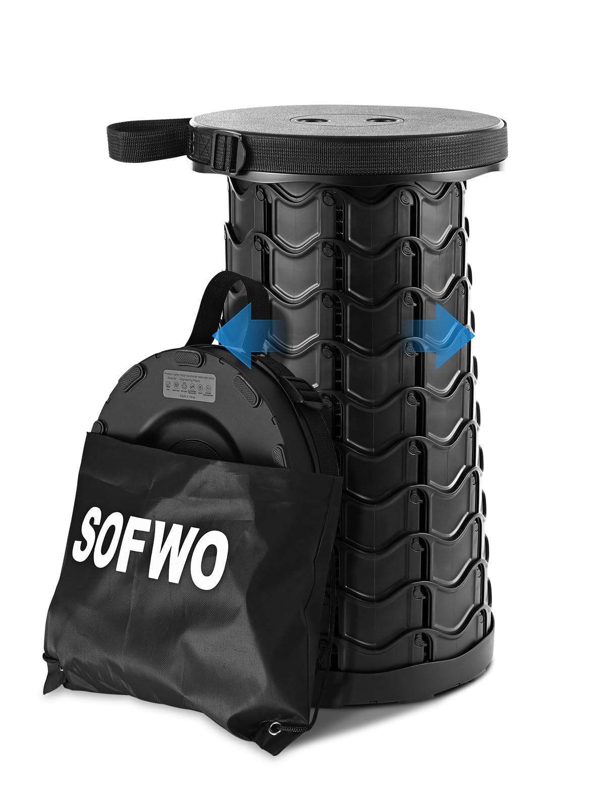 SOFWO 折りたたみ椅子 キャンプ椅子 伸縮式 折り畳み式アウトドアチェア 軽量 コンパクト 持ち運び便利 耐荷重180KG 一秒開閉でき 高さ 調整可能 6.5-45CM 【意匠登録】 釣り 旅行 バーベキュー 行列待ち アウトドアスポーツ 収納バッグ付き (ブラック+ 本体の拡幅 + 滑り止めベース)