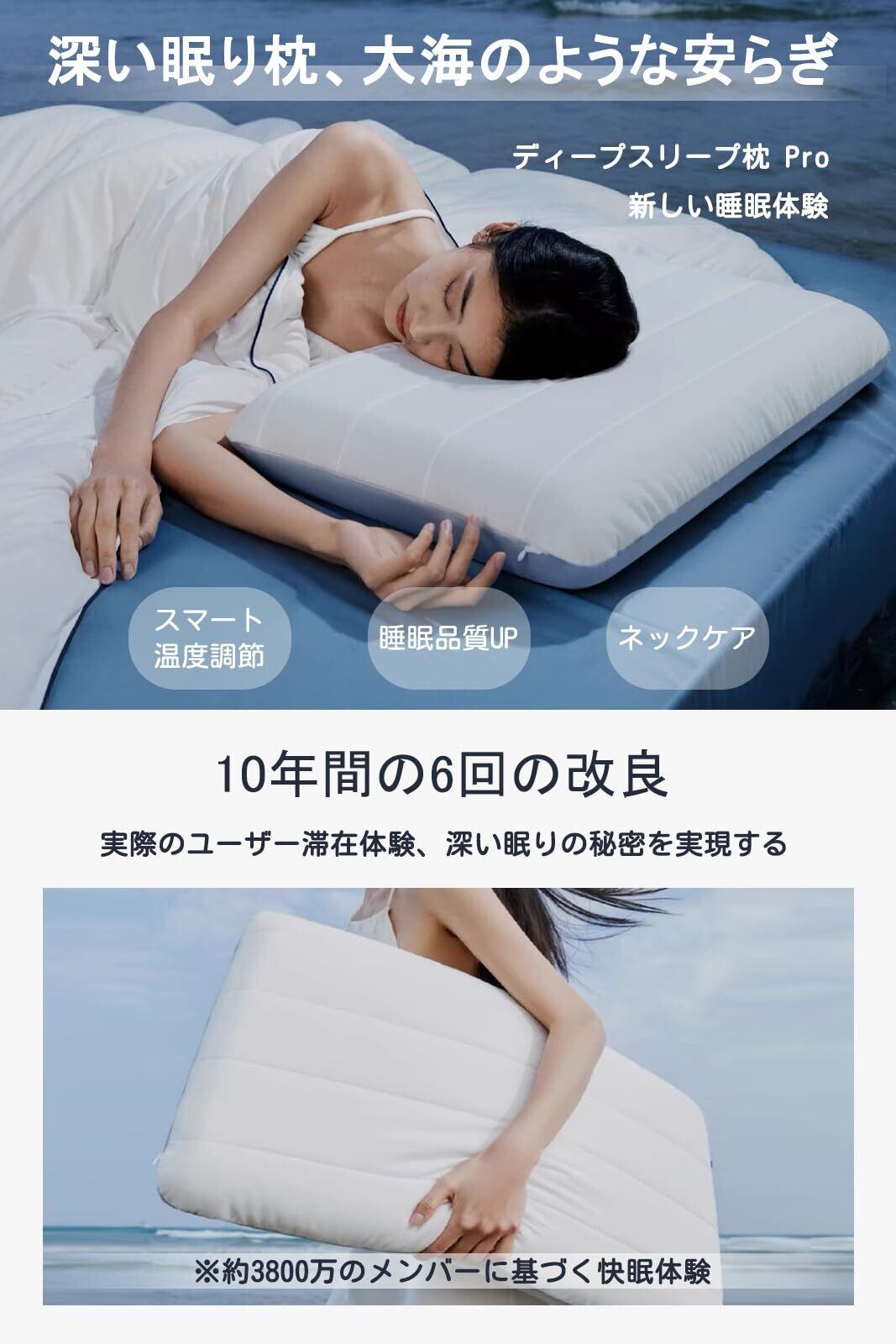 【一年中快適な睡眠を実現】枕カバーには最新の宇宙技術を応用したPCM相変化材料を使用。体温に合わせて熱を吸収・放出し、季節を問わず快適な眠りを実現します。