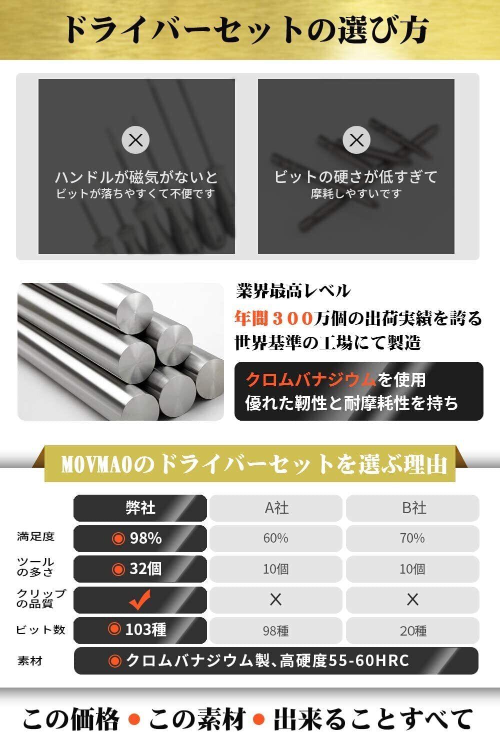 精密ドライバーセット MOVMAO 130 in 1 103種ビット トルクスドライバー 磁気ドライバー 滑り止めハンドル 特殊ドライバー ネジ回し 多機能ツールキット iPhone Switch DIY 修理ツール 専用ケース 磁石付き Black