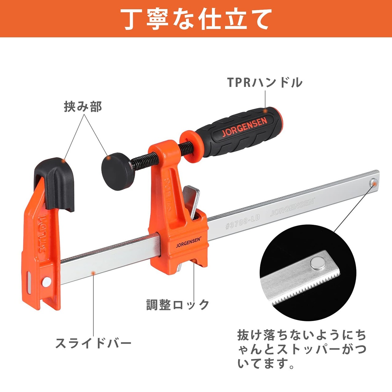 JORGENSEN Fクランプ クランプ 最大締付力136kg 口開き200mm DIY工具 木工 接着 強力 固定 溶接 作業 切削 締付 F型 2個セット