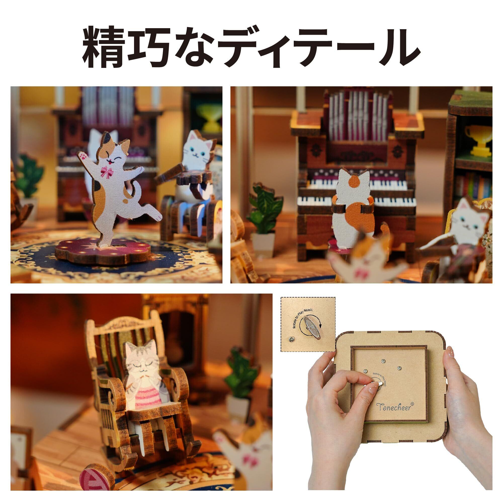 Tonecheer オルゴール 立体パズル 3D木製パズル DIY音楽ボックス 組み立て 回転式オルゴール 時計仕掛け 発条 ウッド クラフト 女の子 大人 誕生日 ギフト(猫の集まり)