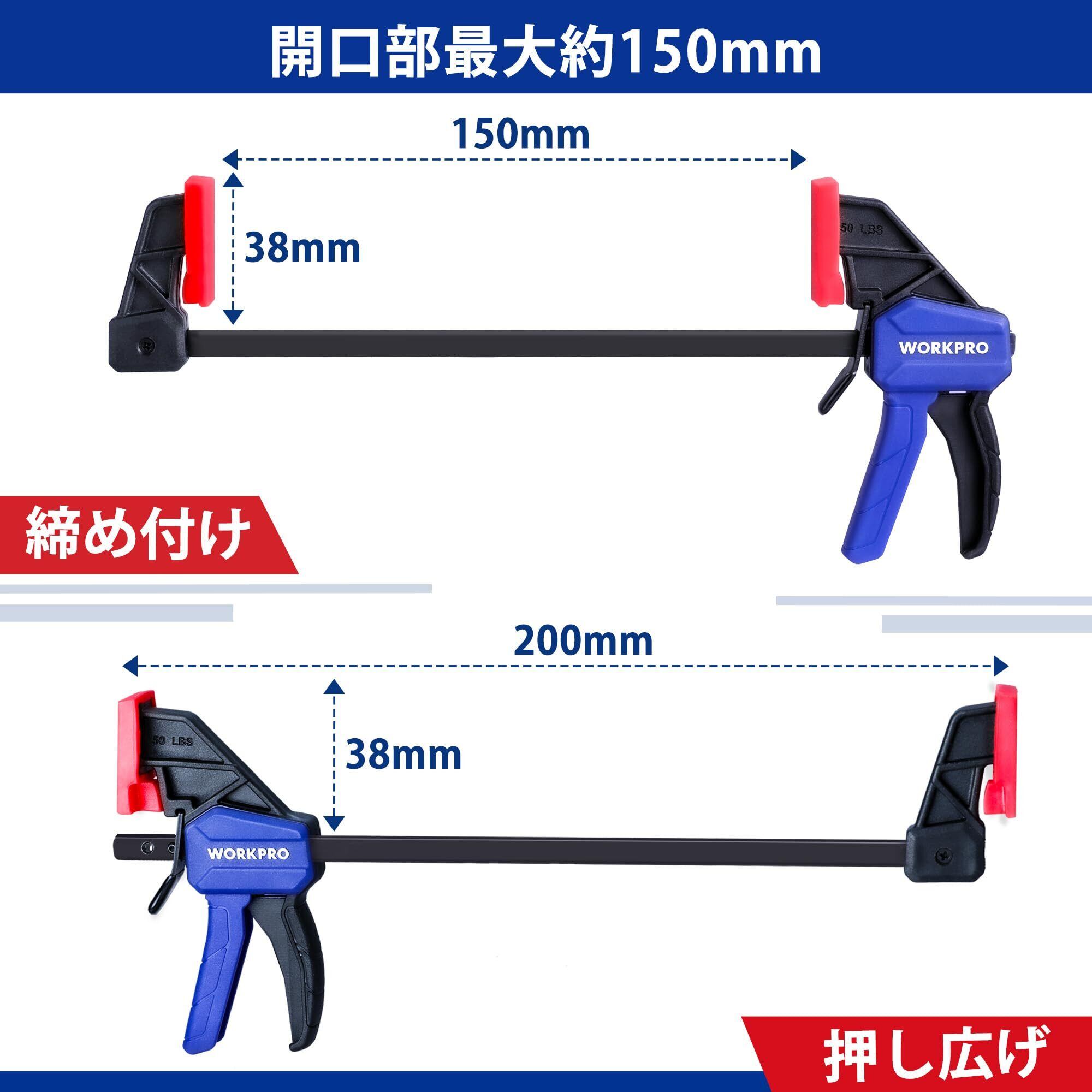 WORKPRO クランプ Fクランプ 2本組 ラクイックバークランプ 150mm F型 最大締付力約23KG 1セット2役 クイックリリースレバー 滑り止め 木工作業 木材 強力固定 接着 溶接 切削 DIY 工具