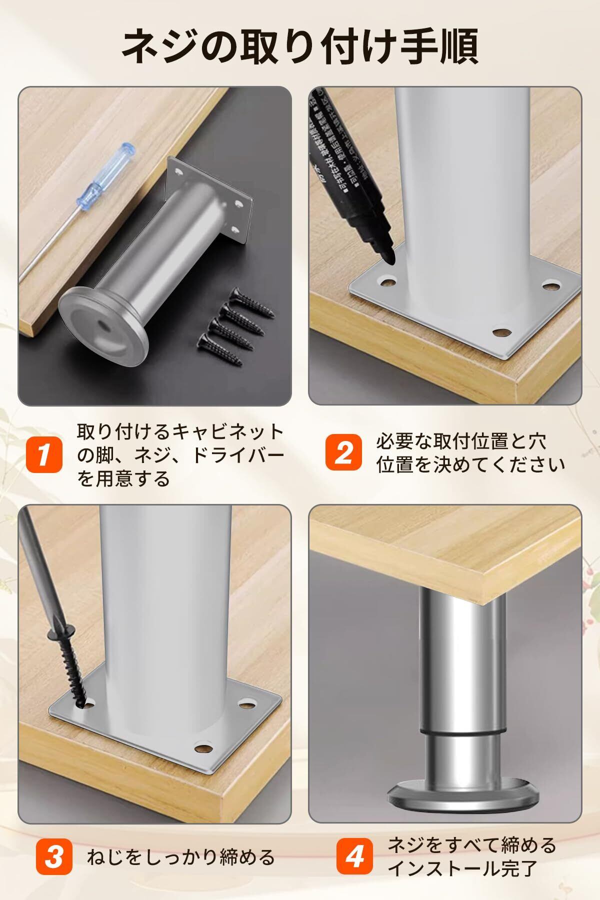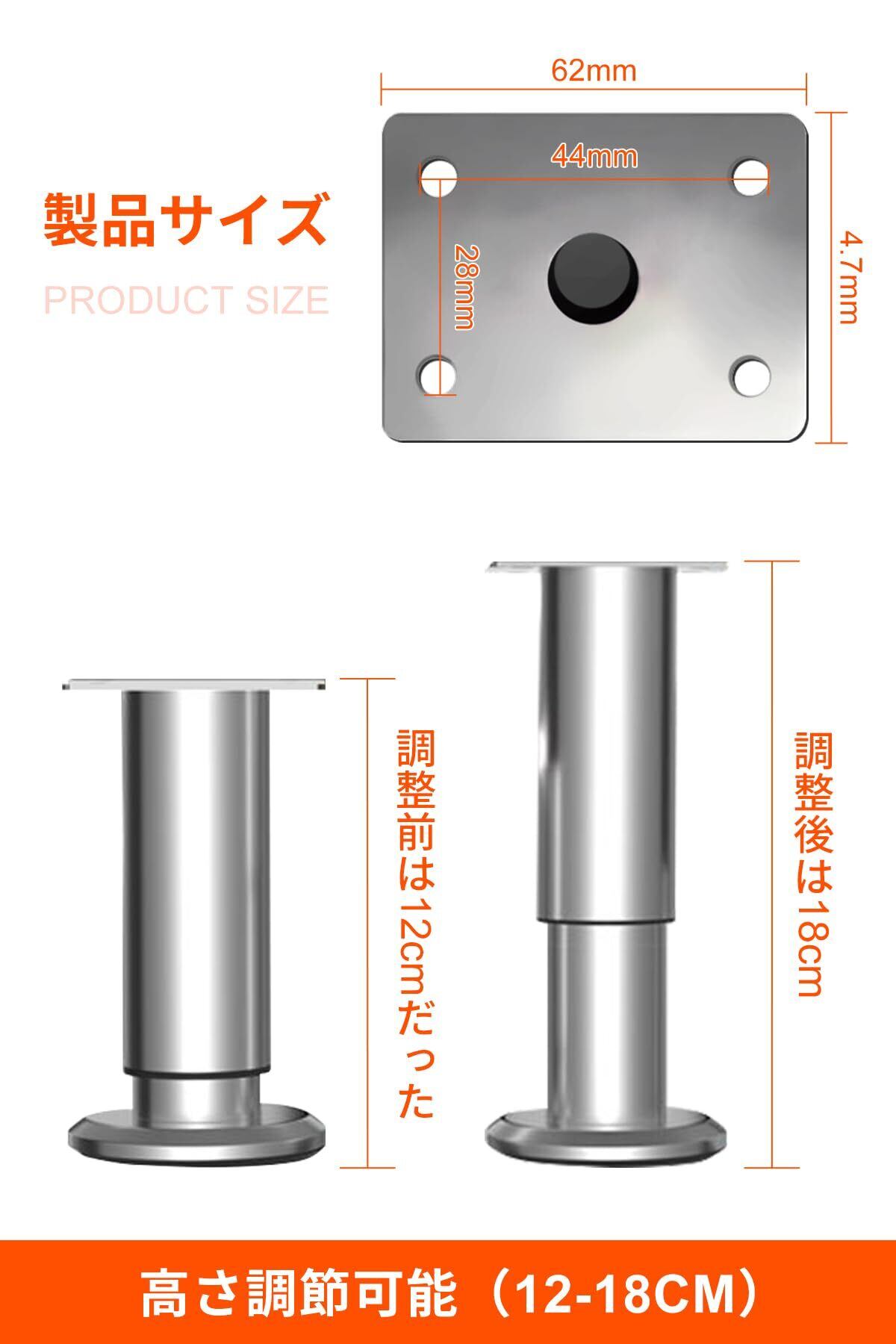 デスク 伸縮式 レベリングフット 家具脚 4個セット 金属製 ソファ脚 高さ 調節可能 DIY ソファー/テーブル/ベッド 置き換え足 (ステンレス鋼, 12cm-18cm)