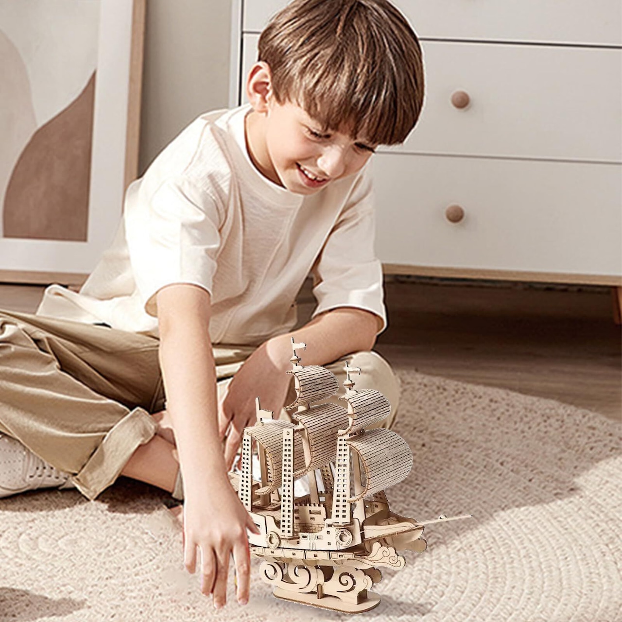 【接着剤不要の3Dパズル組み立て体験】:パーツ数:83個。 接続剤や道具が不要、到着次第気軽に組み立てられるのもポイントです。日本語説明書付き。創造的なアプローチと洗練された木製のパズル。組み立てると船モデルが出てきます。 パーツがどのように組み合わされるかを示すパーツペーパーの説明書付き。 すべての部品が正確に組み合わされます。 組み立てが簡単で、接着剤や工具は必要ありません。 完成すると大きな達成感が得られます。 この 3D パズル モデルは、リビング ルーム、オフィス、寝室などの素晴らしい装飾になります。