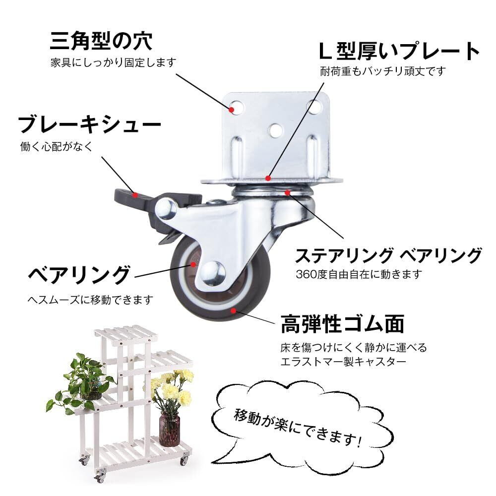 【幅広く適用】キャスターは、オフィスチェア、コーヒーテーブル、植物棚、本棚、シューズキャビネット、おもちゃ箱、ショッピングカート、作業台などに広く使用されています。