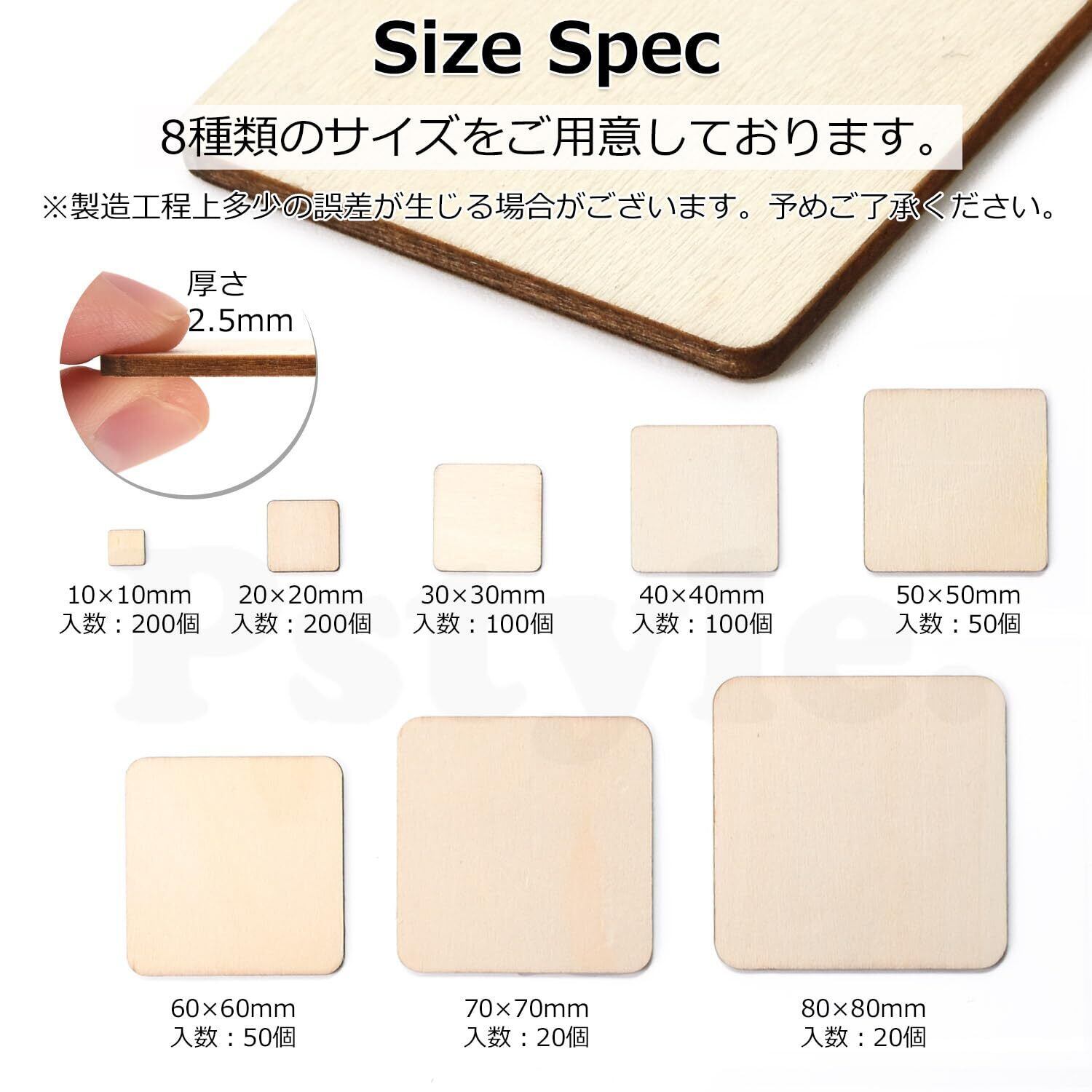 Pstyle. 木材 チップ スライス セット ウッド 板 DIY 手作り 正方形 PST-164 (60x60mm 50個)