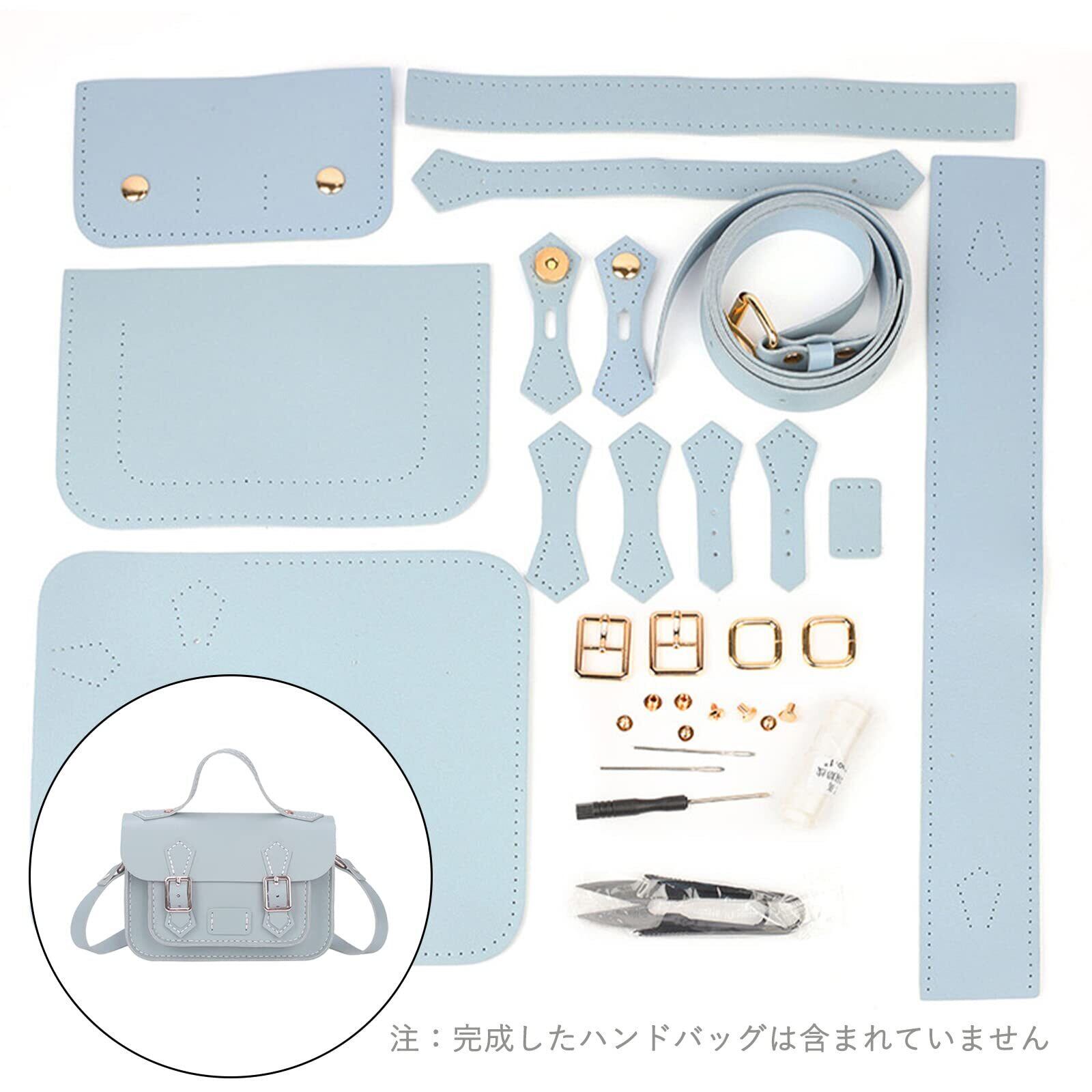 DIYハンドバッグ作成キット レザークラフト ショルダーバッグキット レディース 手作り バッグ キット レザークラフトハンドバッグ メイキングキット ハンドステッチ 財布 作成キット DIYキット 手作りセット 裁縫キット 初心者 (スカイブルー)