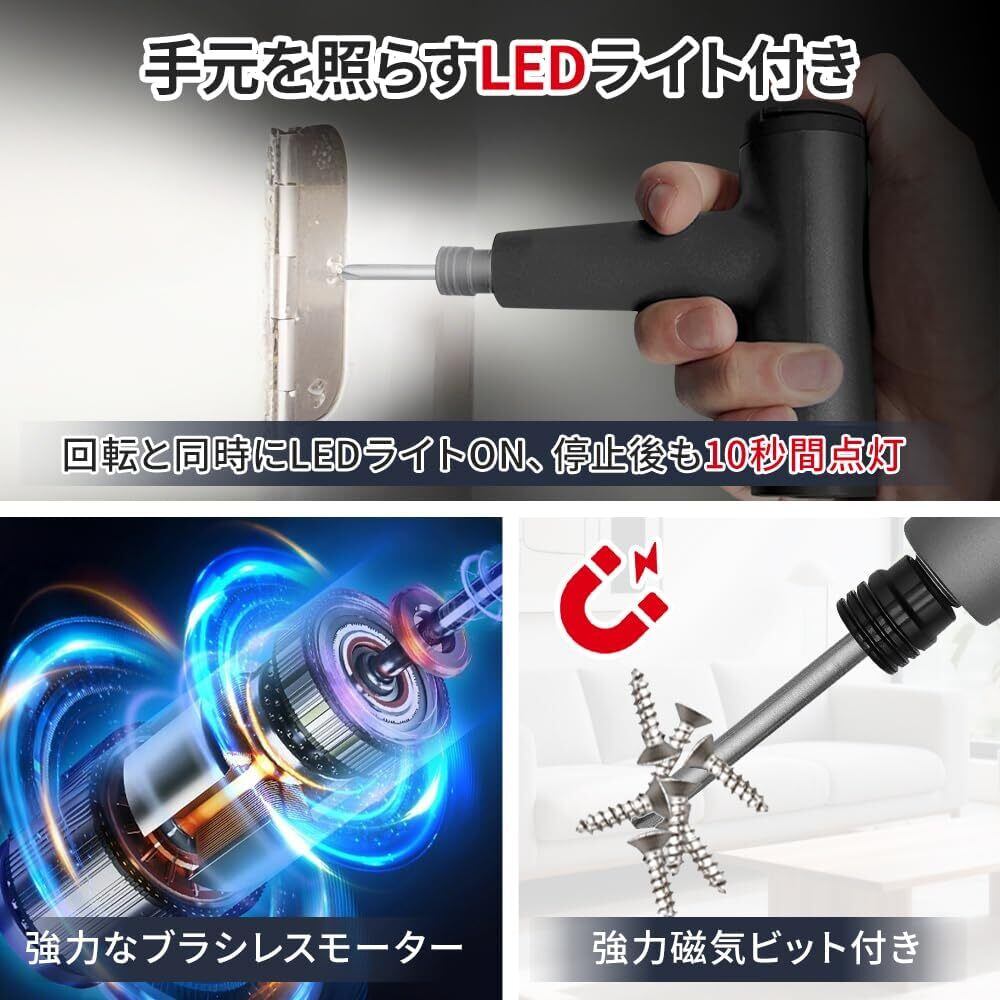 【取り付け簡単&コンパクトで軽量&専用収納ケース付き】電動ドリルドライバーは6.35mmの六角軸を採用し、スリーブを引き出し、ビットを入れ、スリーブを緩めるだけでビットの取り付けが完了し、ビット交換も簡単になります。使用中にドライバービットを交換したり、脱落したりする心配はありません!電動ドライバー本体わずか199gの軽量設計で、サイズは10.2*11.8*3.4cmで、片手で簡単に操作でき、長時間利用しても疲れず、女性や高齢者の方でもDIY家具の組み立てを楽に使用できます。付属の専用収納ケースはすべての付属品を整然と所定の位置に保管でき、部品の散乱や紛失を防ぎ、外出の持ち運びも、収納にもとても便利です。