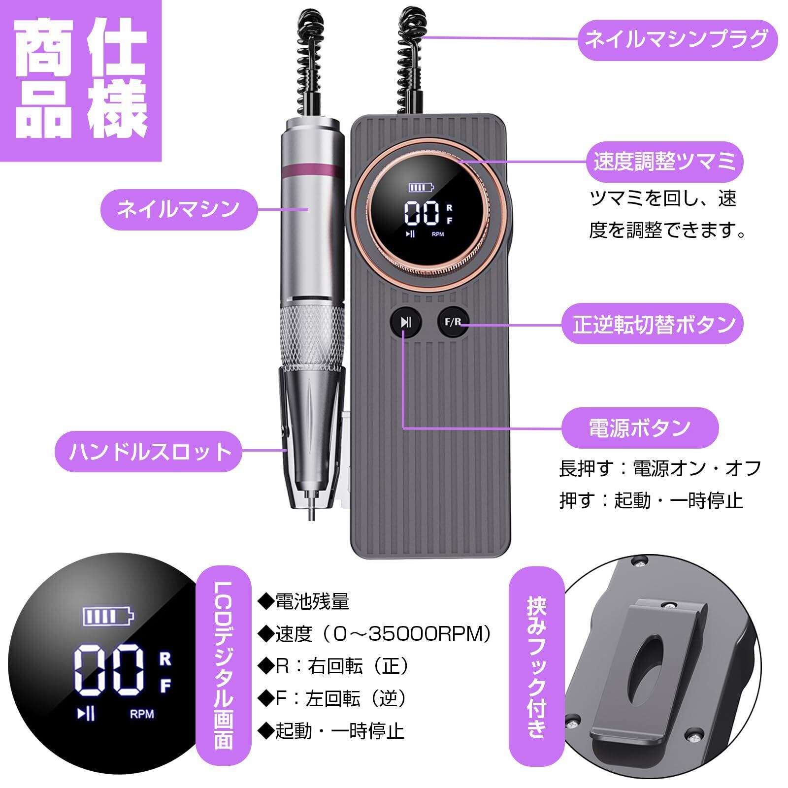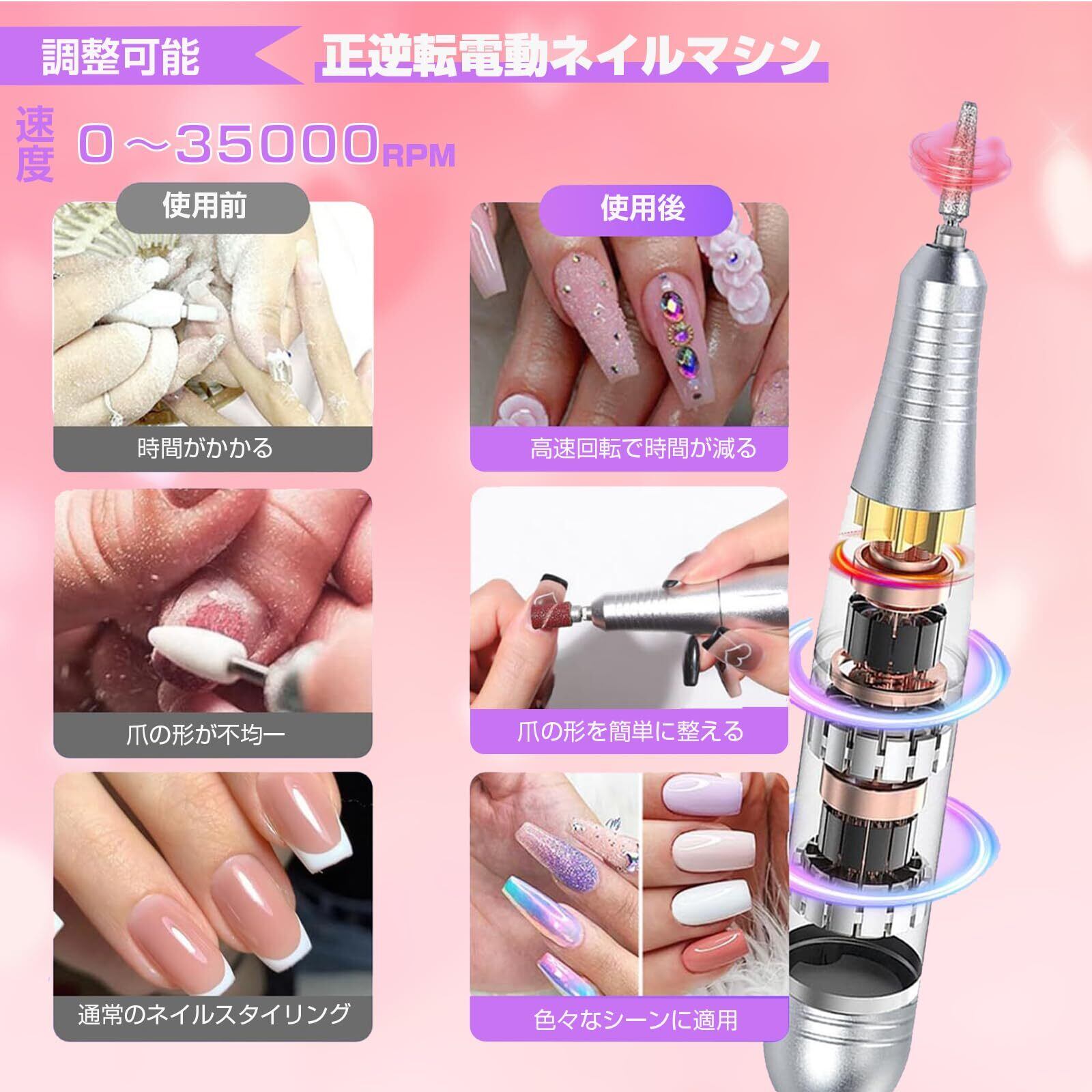 電動ネイルマシン エルエンスタジオ 携帯用ネイルマシーン 電動ネイルマシンキット 充電式ネイルドリル 0-35000RPM スピード調節可能 正逆回転 ジェルネイル研磨 爪やすり 爪磨き マニキュア対応 ビット6個 日本語説明書付き