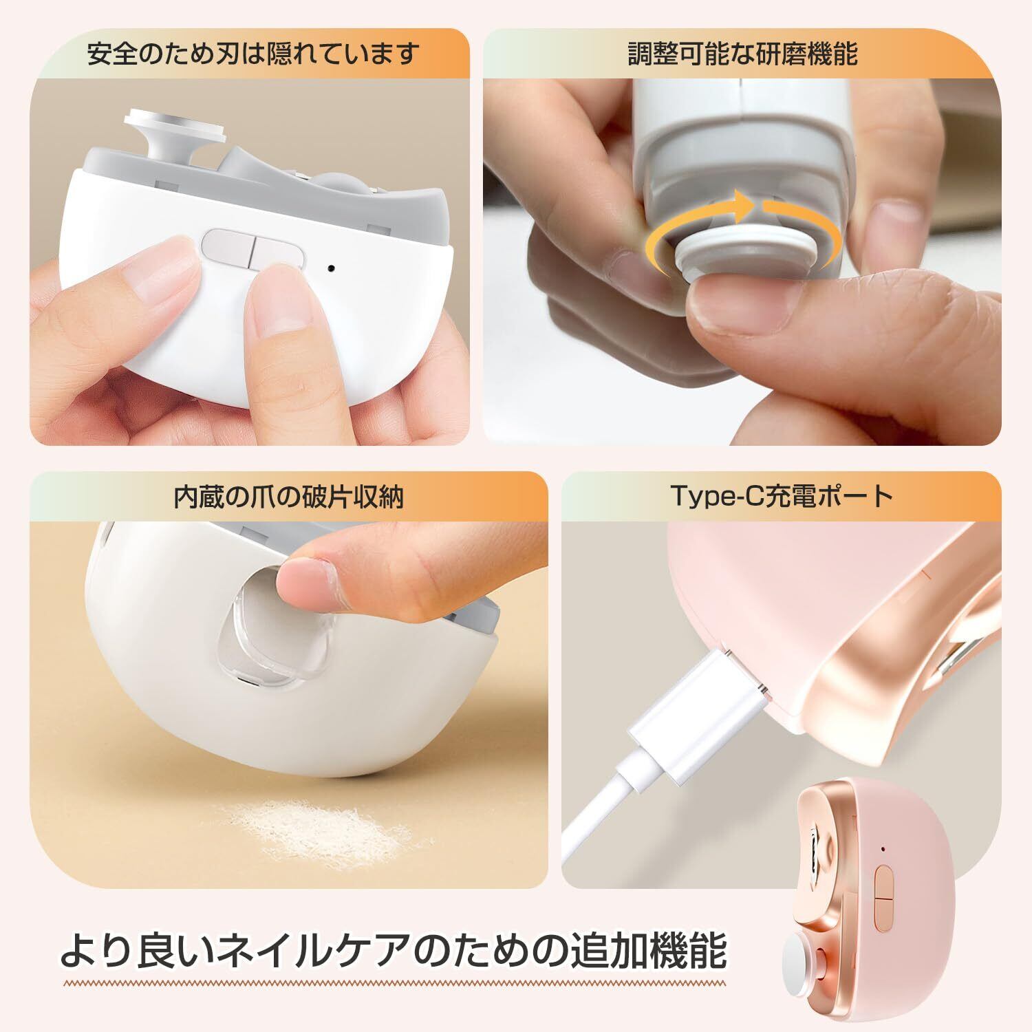 ICHIYO 電動爪切り 電動爪削り 爪とぎ 両用 2in1 電動つめきり LEDライト付き Type-C充電式 2段階スピード 爪傷防止 簡単操作 安全 低騒音 赤ちゃん/子供/大人/高齢者と家族全員に向けプレゼント (ピンク)