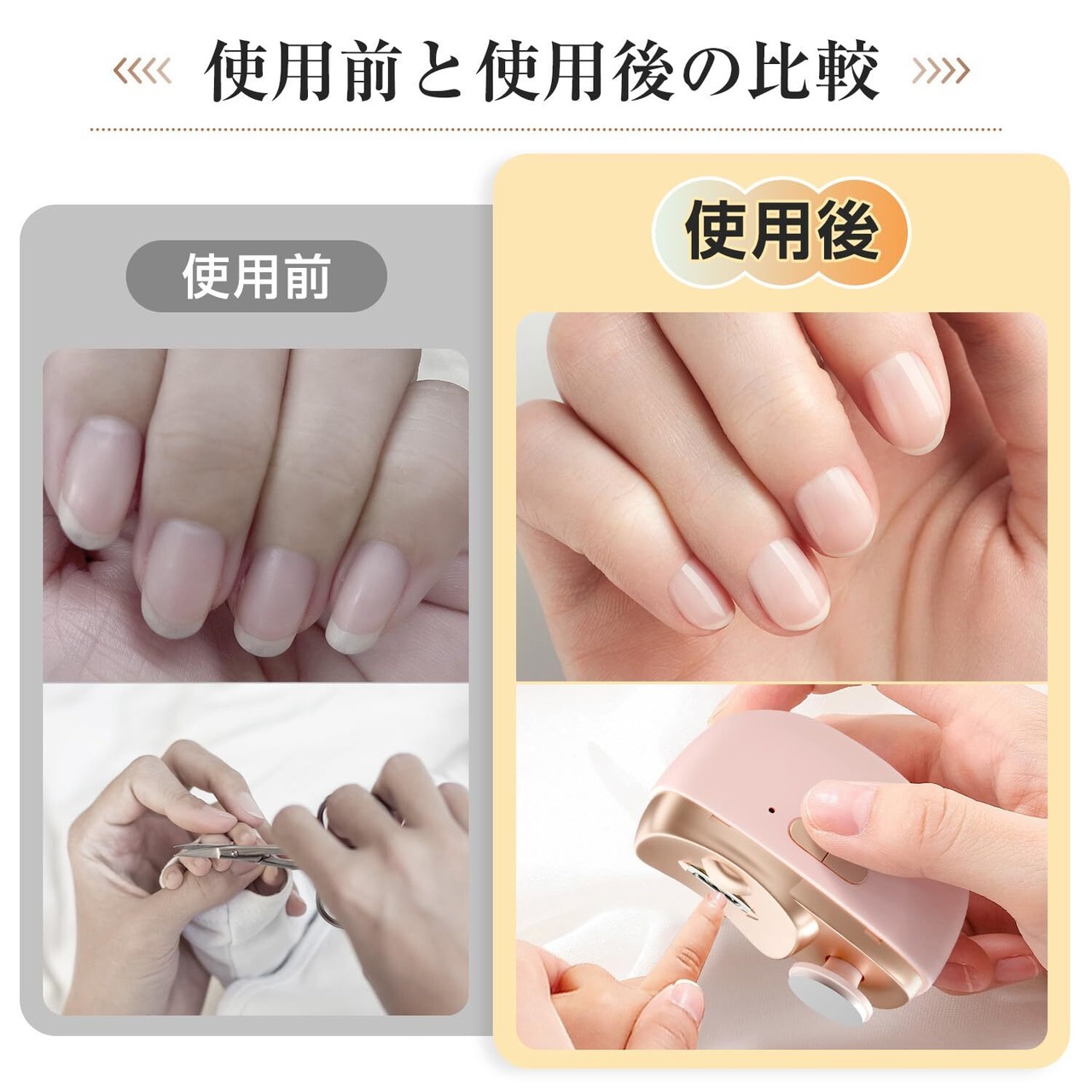 【2 in 1 多機能デザイン】 これは最新設計の電動爪削りです、爪を整えた後は、爪を滑らかで光沢のあるものにするために研磨を楽しむことができます。高度な電気モーター技術と高速刃を使用して、最高の体験を提供します。面倒な手作業によるやすりがけとはお別れして、素早く楽なネイルケアを始めましょう。当社の電動クリッパーは、ネイルケアを楽にします。別のツールを必要とせずにきれいにトリミングされた爪で、時間と労力を節約します。