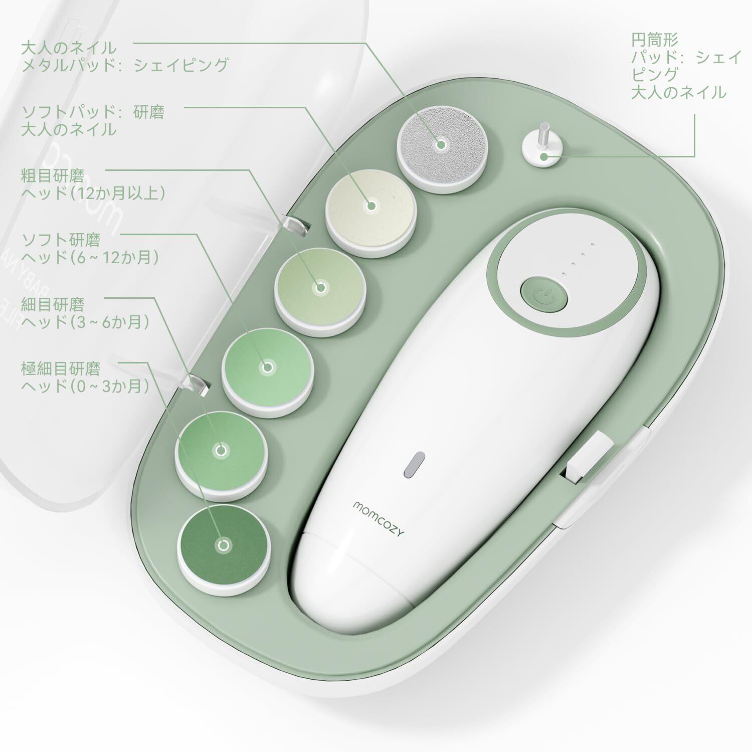 Momcozy 赤ちゃん つめやすり 電動 ベビー 爪切り セット LEDライト付き 7種類交換ヘッド 新生児 子供 つめきり 出産準備
