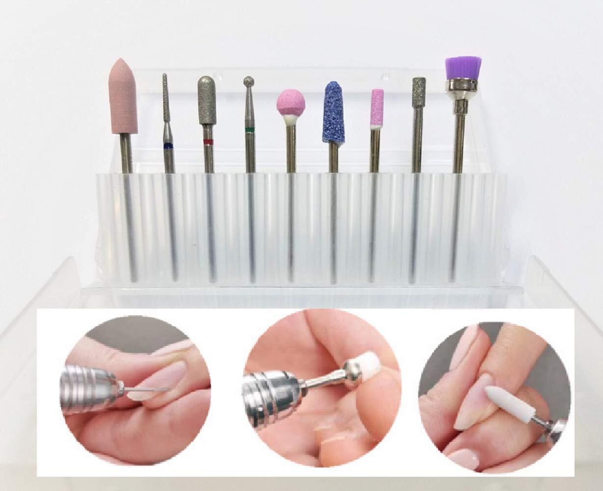ストーンキューティクルビット、ダイヤモンドビットとネイルドリルブラシ、耐久性がある優れた素材と2.35mm軸の様々な形とサイズで、簡単にキューティクルを取り除き、ネイルケアにオススメのビットセットです。