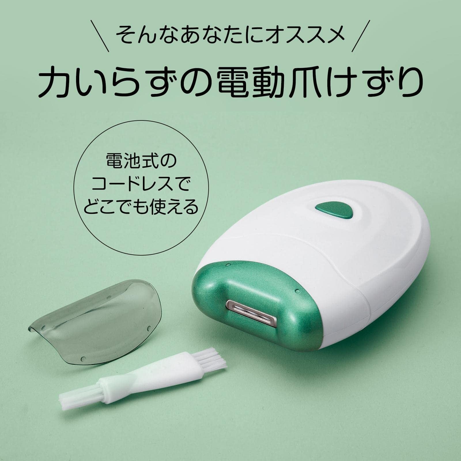 コモライフ 電動爪けずり 電動爪切り 爪やすり 電動爪やすり 爪削り 掃除ブラシ付き 回転式 電池式 コードレス ネイルケア 肌を傷つけにくい 飛び散らない 硬い爪 高齢者 足の爪 介護 深爪 【単3アルカリ乾電池2本(別売)】