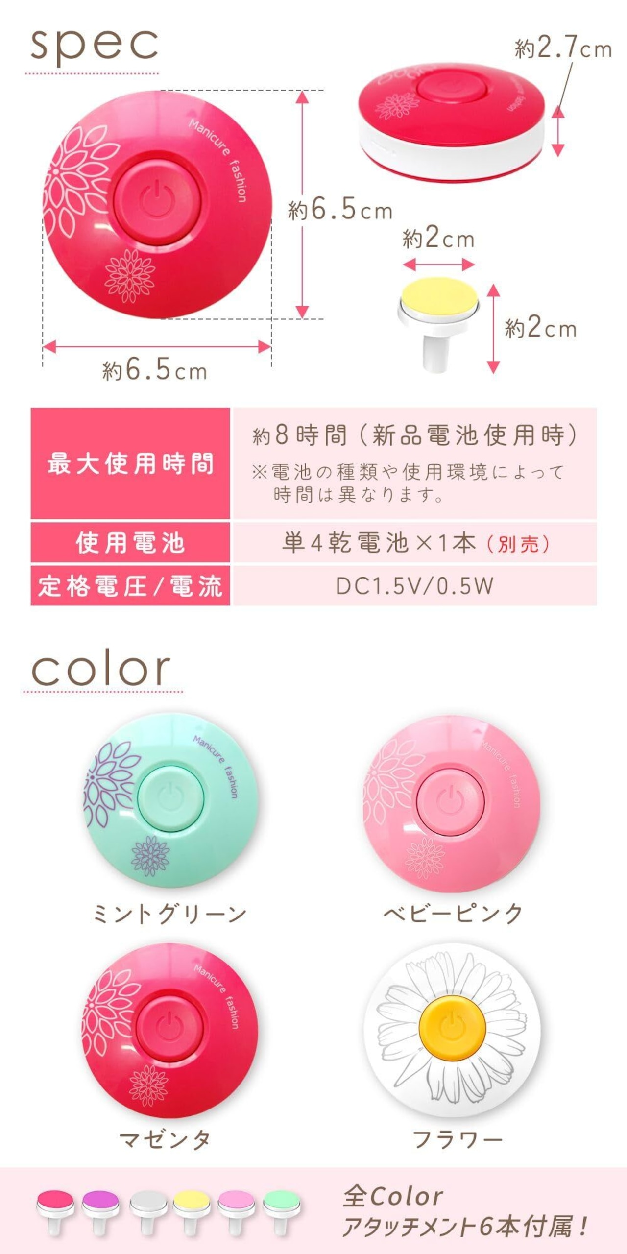 MILASIC ベビー電動爪ヤスリ マゼンタ 赤ちゃん Baby 爪切り 爪やすり 新生児 大人 子供 爪 削り けずり 電池タイプ 人気 ネイルケア かわいい 簡単操作 出産祝い 単4電池 引っ掻き防止 衛生 静音
