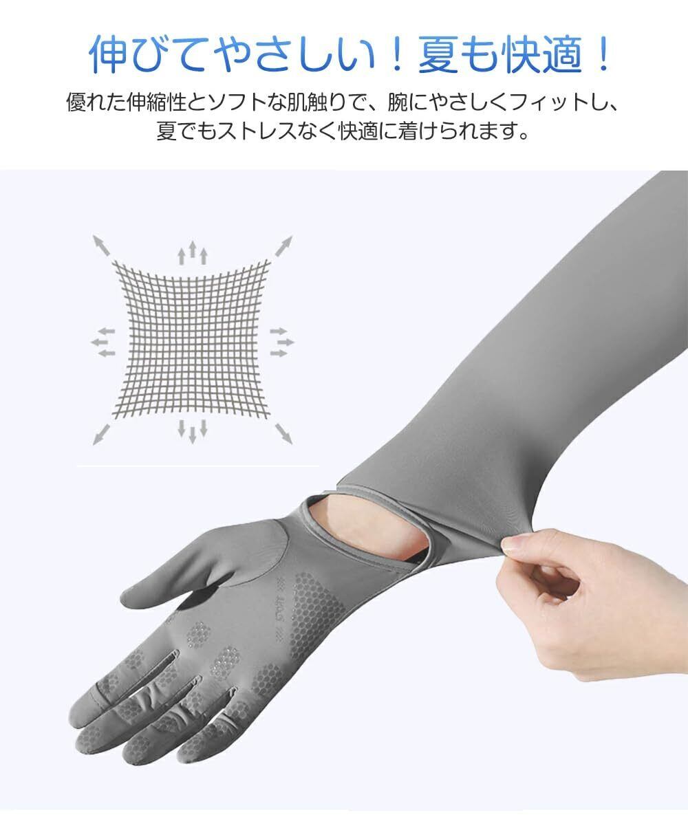 アームカバー レディース 夏 指先まで 冷感 ロング 日焼け防止 あーむかは しろくまのきもち 腕カバー UVカット 手袋着脱可能 滑り止め スマホ操作 涼しい 自転車 ゴルフ 釣り サイクリング アウトドア