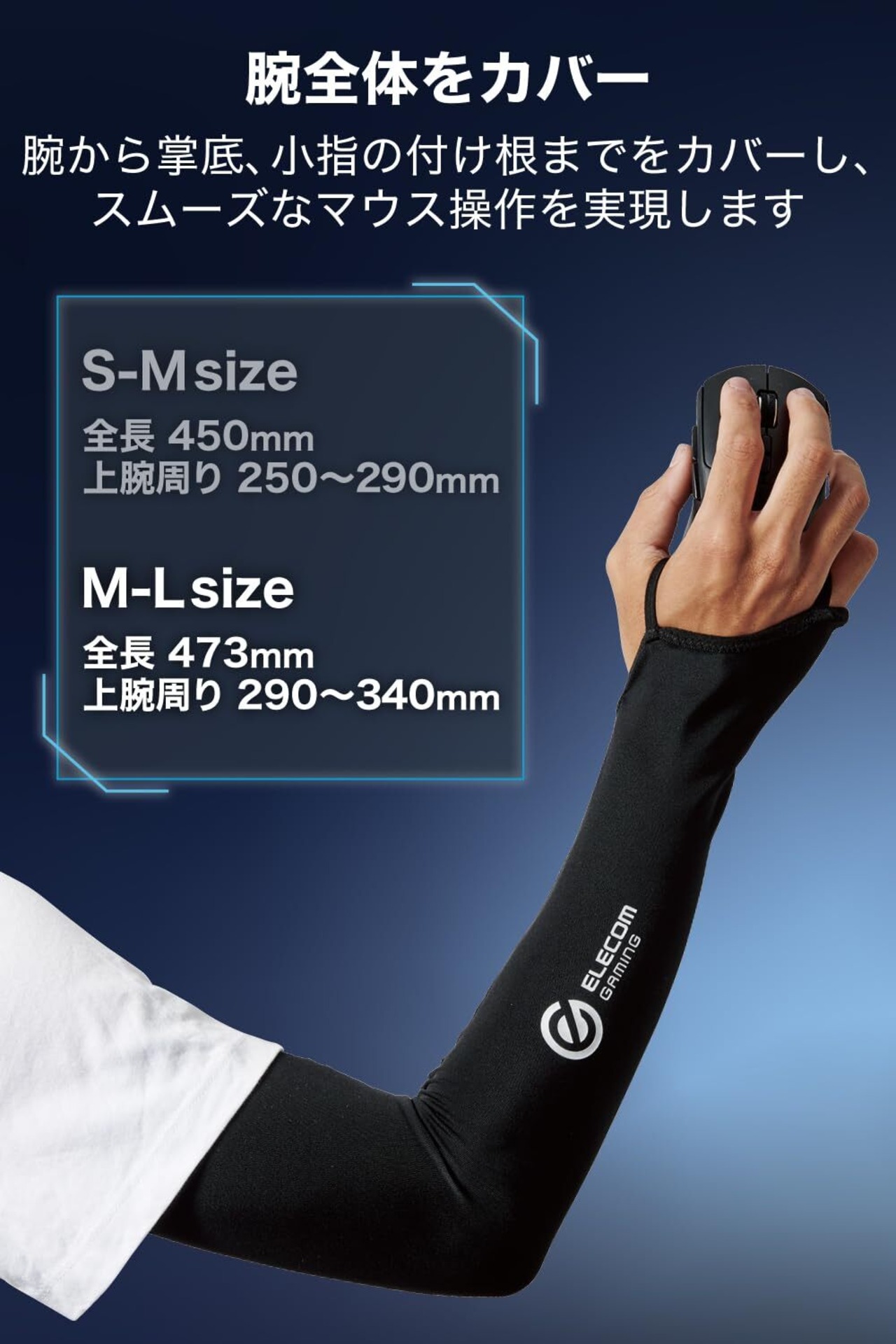 エレコム アームカバー ゲーミング用 V custom M-Lサイズ 指掛けタイプ 摩擦軽減 掌底部分もカバー 洗濯機OK 右手・左手対応 全長47.3cm 上腕周り29~34cm ブラック GWVA300LLBK