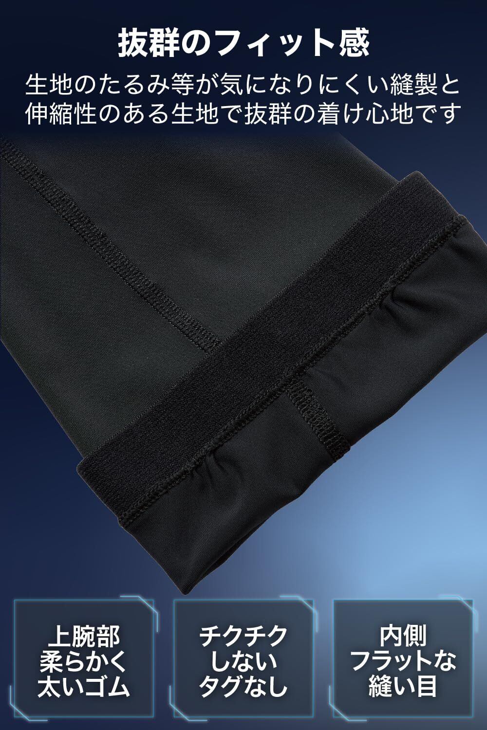 ■内側の縫い目はフラットでタグもないためチクチクしません。上腕部のゴムは柔らかく太いので、肌当たりがソフトで快適な着け心地です。
