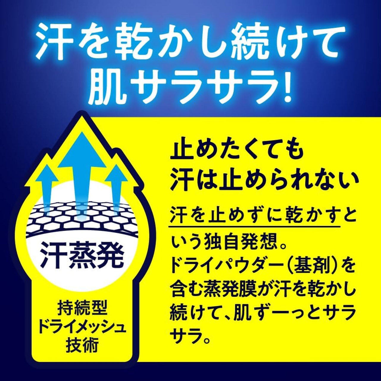 足ムレ感0へ。1日ずーっと足サラサラ。足用クリーム。汗を止めずに乾かすという独自発想のもと「持続型ドライメッシュ技術」を搭載。ドライパウダー(基剤)を含む蒸発膜が、汗を乾かし続けて、肌ずーっとサラサラ。すっきり成分(清涼剤)配合(メントール・ペパーミント抽出液)。足指・足裏に伸ばしやすいクリーム。肌にしっかり密着し、汗をかいても落ちにくい。石けんの香り。足のニオイ気にならない機能性香料配合。