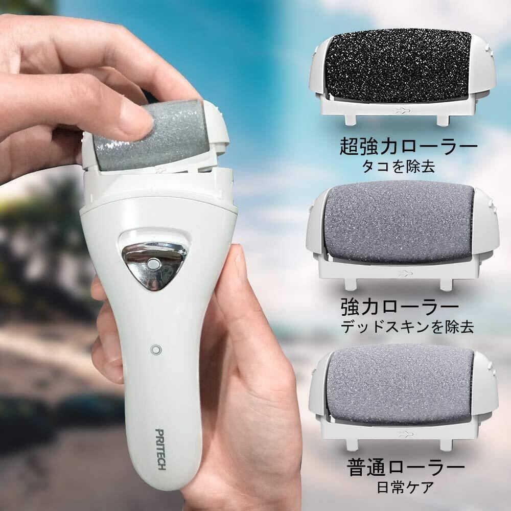 PRITECH 電動角質リムーバー【2段階スピード 3種ローラー】USB充電式 LEDライト付き 強力パワー 角質やすり ハードスキンリムーバー 角質ケア かかと角質除去