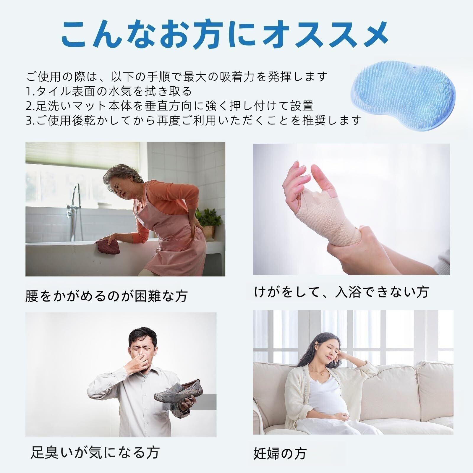 【多機能】裏面の吸盤で壁に付けられるので、ボディーブラシ、泡立てとしてでもご利用できます。※足用、体用2個のマットを別々に購入するのを、お勧めします。