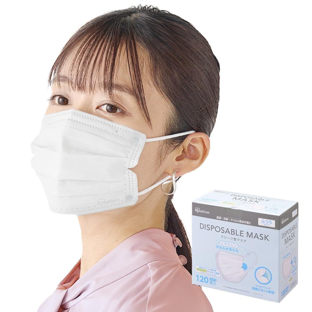 [アイリスオーヤマ] ディスポーザブル 不織布 プリーツ型マスク ふつうサイズ 120枚