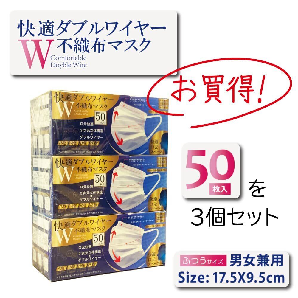 ヒロコーポレーション 快適ダブルワイヤー不織布マスク 50枚入り ふつうサイズ ホワイト 3次元立体構造 (3)