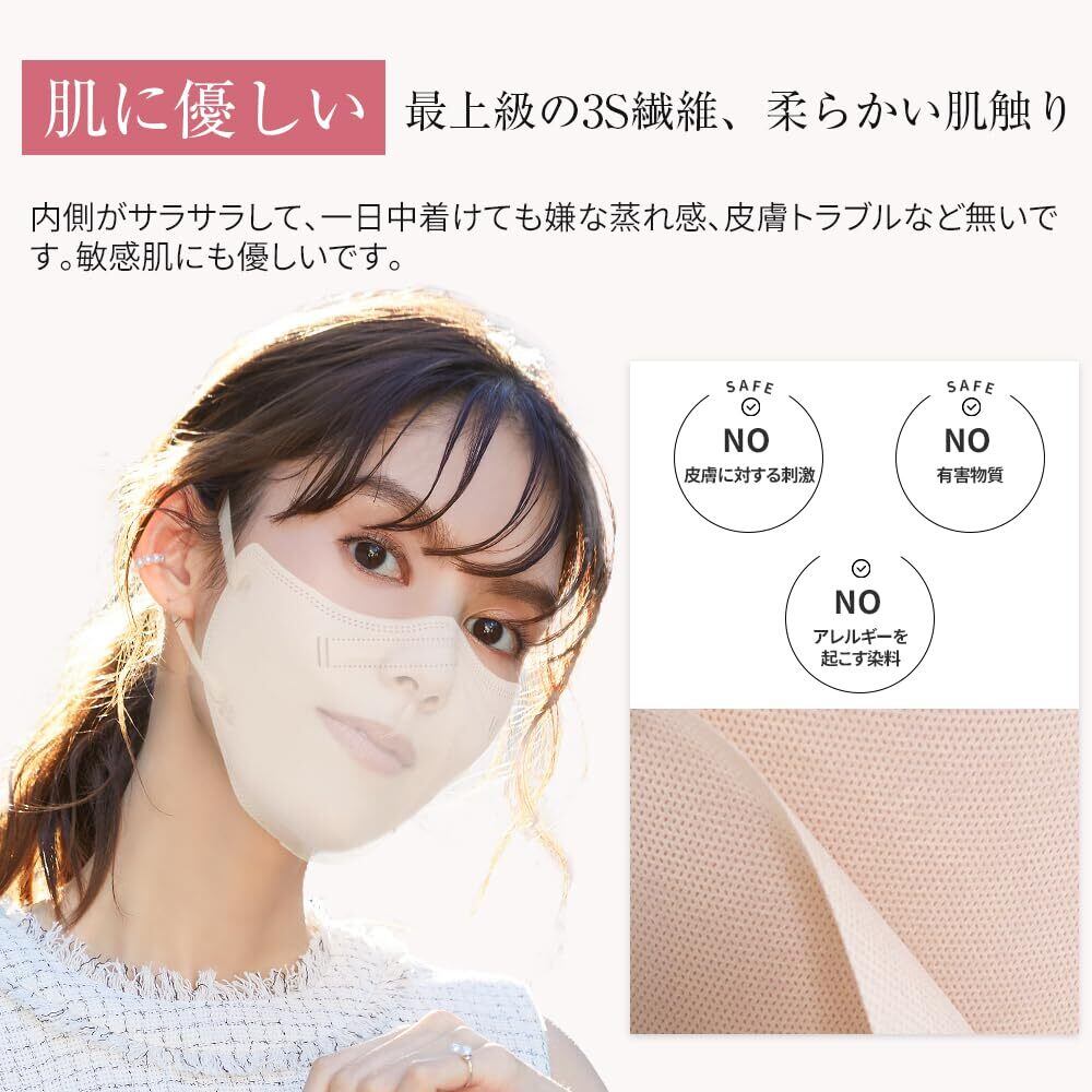 【小顔効果がある】人体工学に基づいた3D立体構造設計で、「小顔効果がある」と、デザイン性だけでなく、マスクの内側の口元も空間があるため、「口紅やメイクが付きにくい」です。気になる鼻筋の部分は調整可能な柔らかのワイヤーがあって、どんな顔でも密着性を高め、空気が漏れる隙間を無くすとともに、通気性の良い特殊な素材を使用している為、「メガネが曇りにくい」「呼吸がしやすい」など機能性も大好評いただいている安心安全にこだわったマスクです。マスク 小さめ