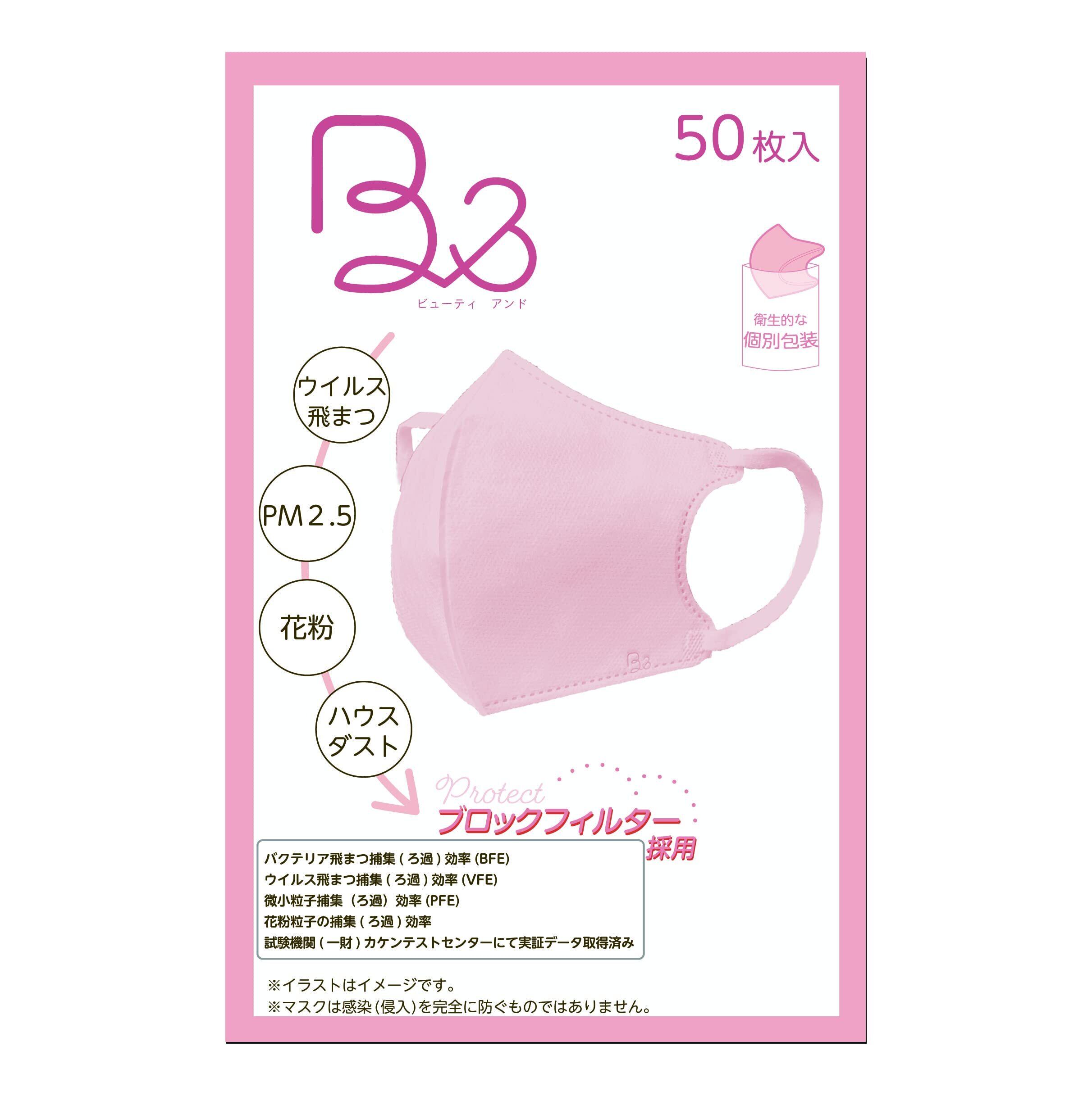 メディトラスト B&(ビューティーアンド)立体カラーマスク 個包装 ピンク 50枚入