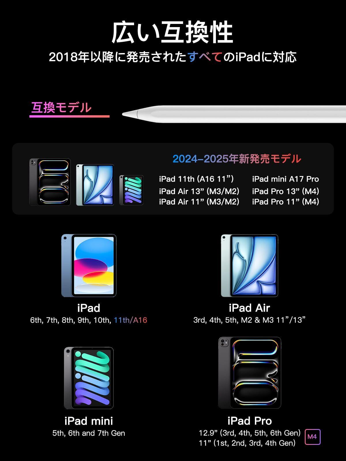 【広範な互換性&24ヶ月】本製品は2018年以降に発売されたiPad専用:iPad (A16)11/10/9/8/7/6世代、iPad Pro 11/13インチ(M4) 、iPad Pro 12.9" (第6/5/4/3世代)、iPad Pro 11インチ、iPad Air 11/13インチ(M3/M2)、iPad Air (第5/4/3世代)、iPad mini (第7 (A17Pro)/6/5世代)。24ヶ月のメーカー付きで、ご不明点があればいつでもご連絡ください。迅速かつ丁寧に対応いたします。