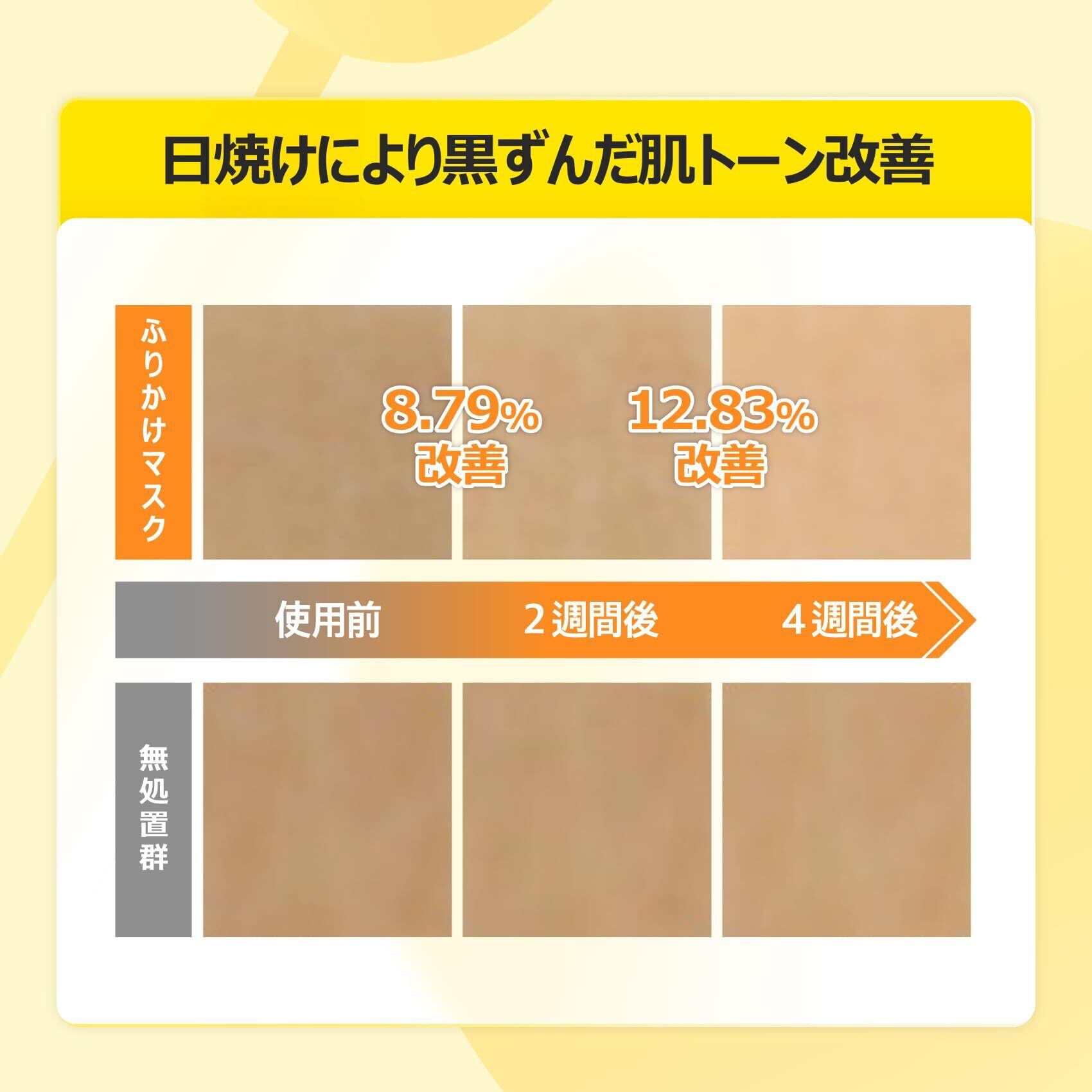 ビタミンCのふりかけを振りかけたオレンジ色の際立つシートマスクに… 表示を増やす