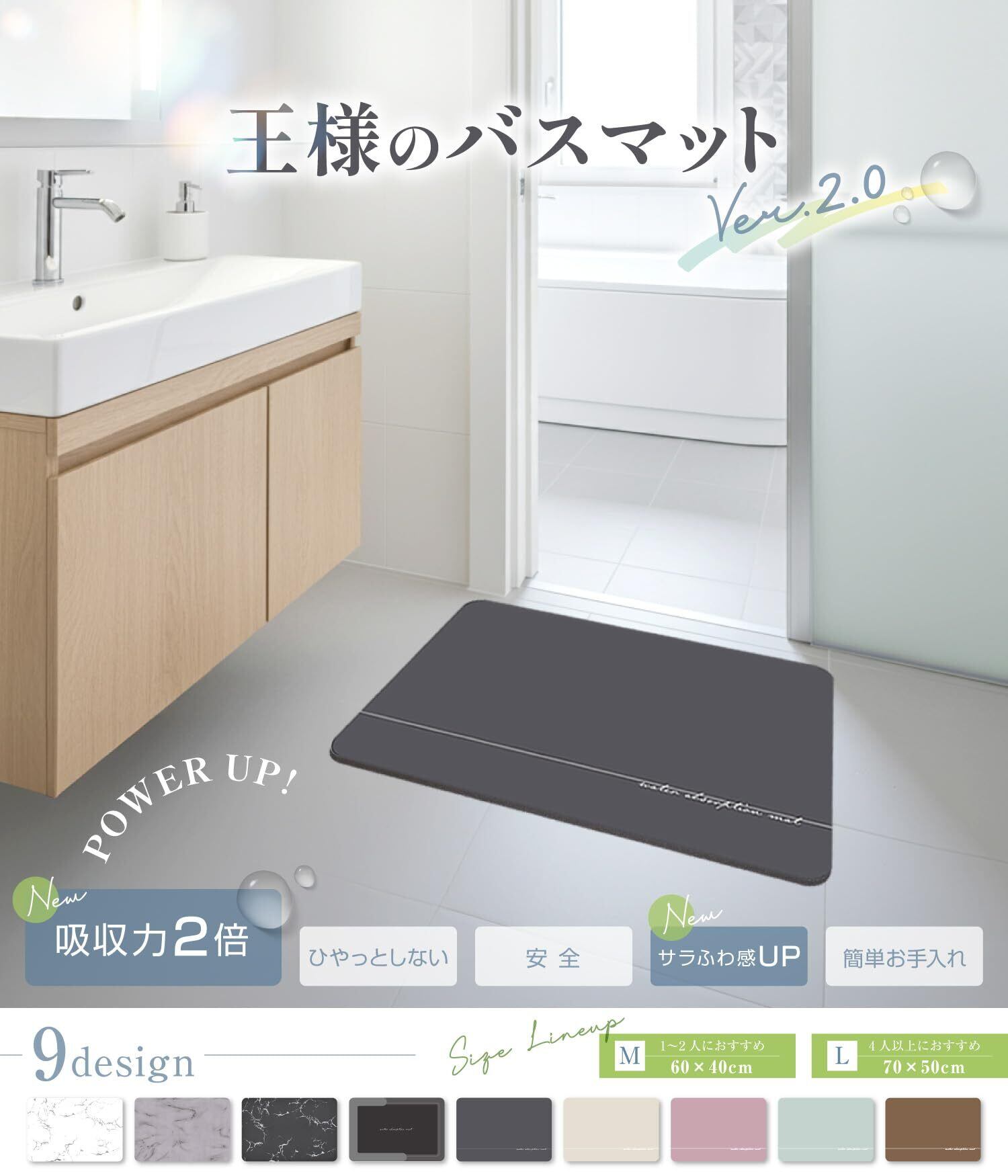 王様のバスマットVer.2.0【更に改善されましたx吸水力2倍サラふわUP】 珪藻土 バスマット 足拭きマット お風呂 洗える キッチン ソフト 速乾 おしゃれ 安心(60cm×40cm, 角型グレー)