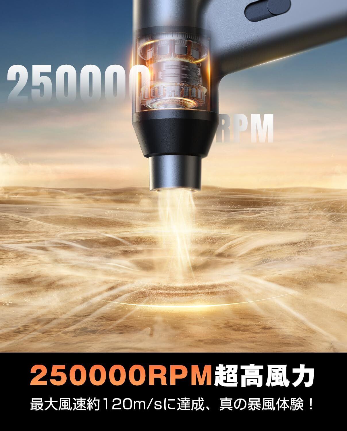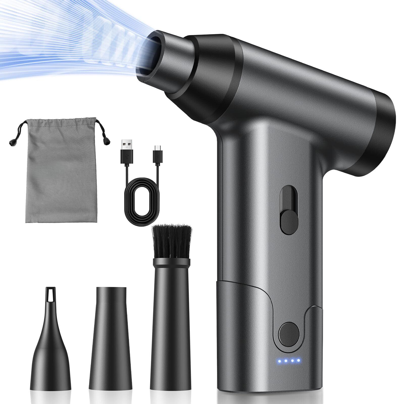 エアダスター 電動エアダスター ブロワー 超強力250000RPM高速回転 最大風速120m/s 無段階風量調整 6000mAh電動エアダスター USB Type-C充電式 215g 小型 3種類ノズル付き PC掃除/キーボード/家具/車内/エアコン/洗車用 収納ボックス 日本語取扱説明書付き