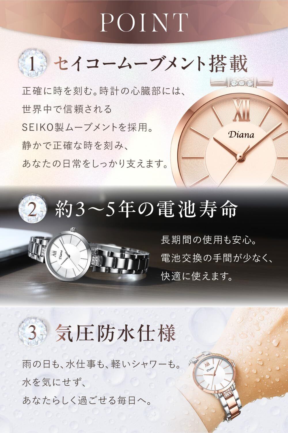 2025最新 [DIANA] 腕時計 アナログ 防水 ZJ0001 レディース かわいい シンプル 日本製 ムーブメント プレゼント おしゃれ 人気 (ローズゴールド)