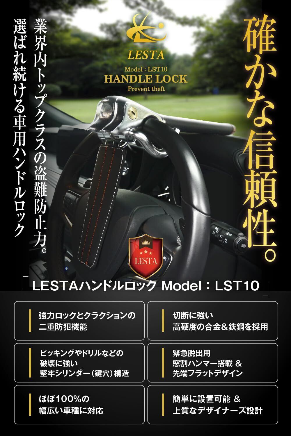 LESTA ハンドルロック 盗難防止 車 ステアリングロック リレーアタック対策 LST10 (ブラック)
